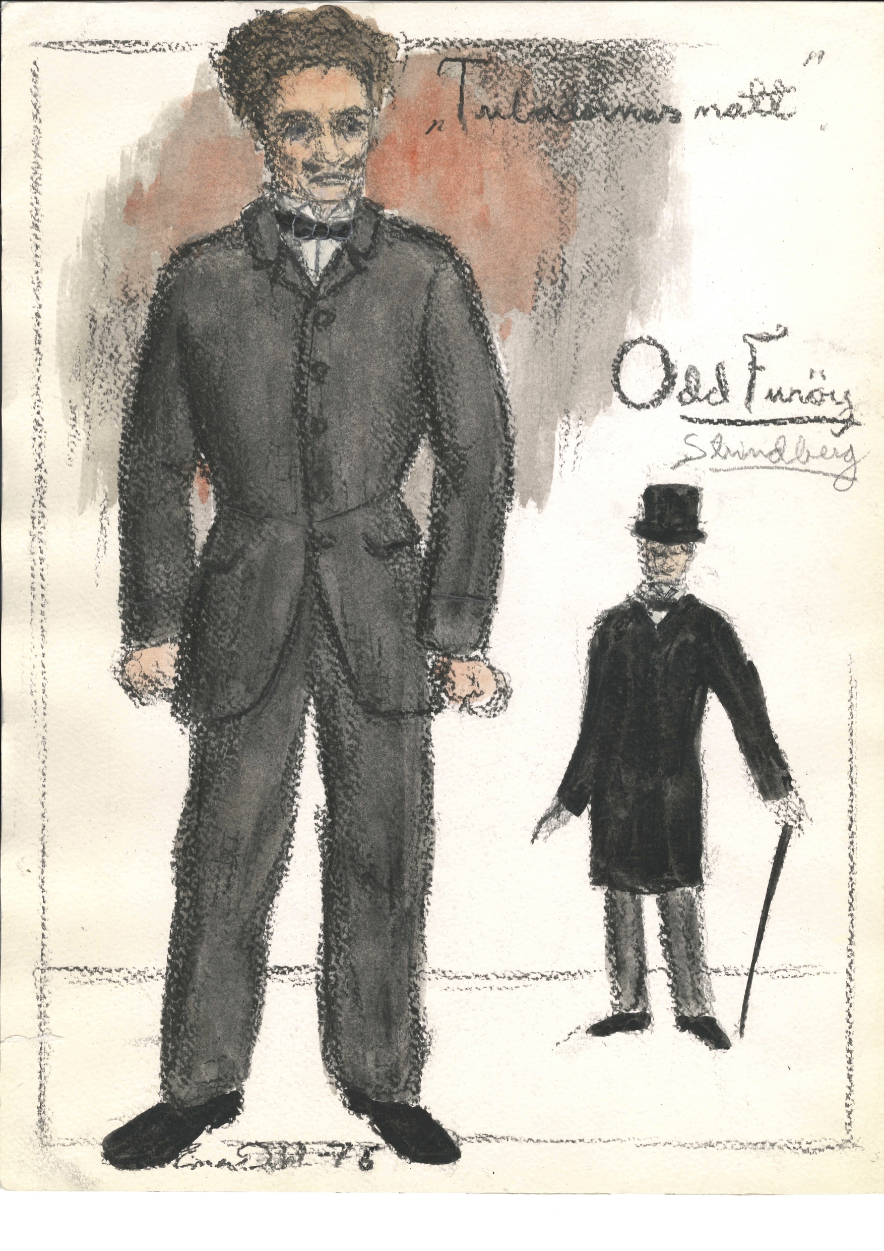 Kostymetegning av Einar Dahl fra Det Norske Teatrets produksjon Tribadernas natt (1976).
