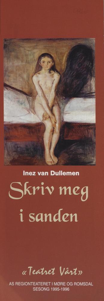 Forestillingsprogram for Teatret Vårts produksjon Skriv meg i sanden (1996).
