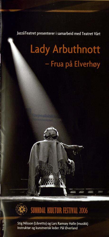 Forestillingsprogram for Jazzåteatret Produksjon og Teatret Vårts produksjon Lady Arbuthnott - Frua på Elverhøy (2006).
