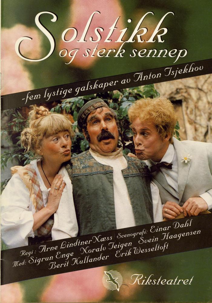 Forestillingsprogram for Riksteatrets produksjon Solstikk og sterk sennep (1995).