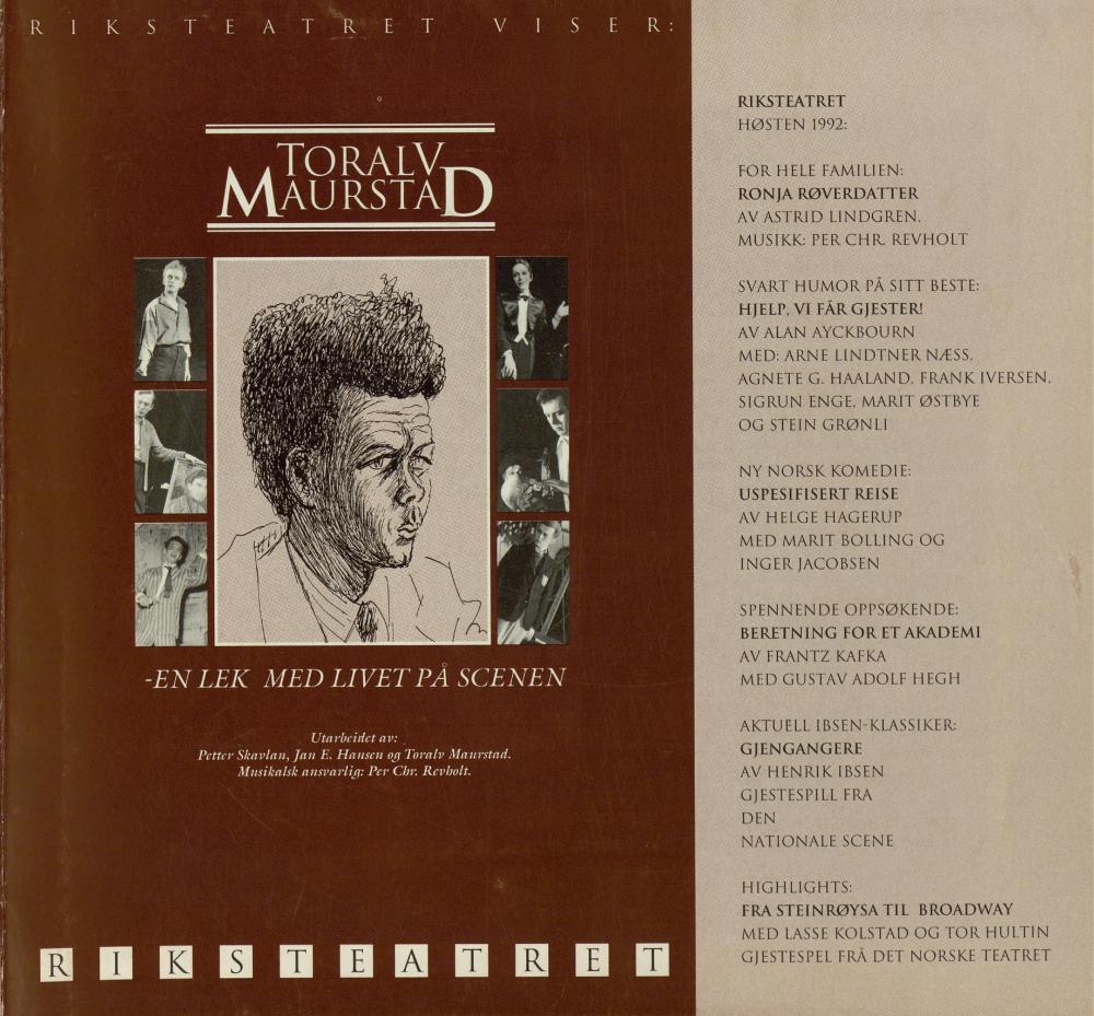 Forestillingsprogram for Riksteatrets produksjon En lek med livet på scenen (1992).