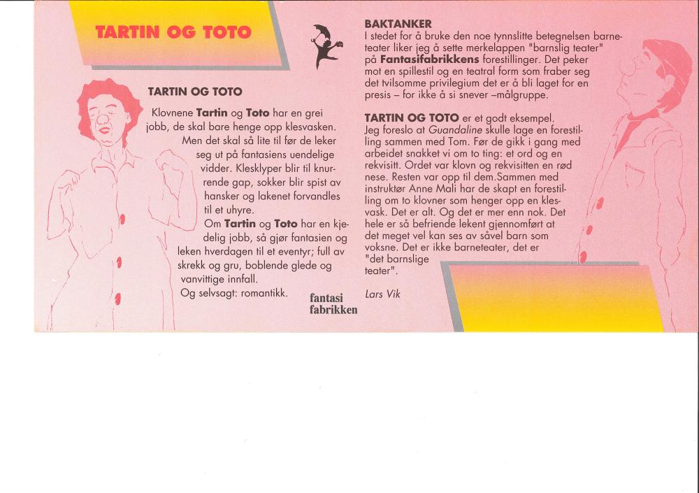 Flygeblad fra Grenland Friteaters produksjon Tartin & Toto (1995).