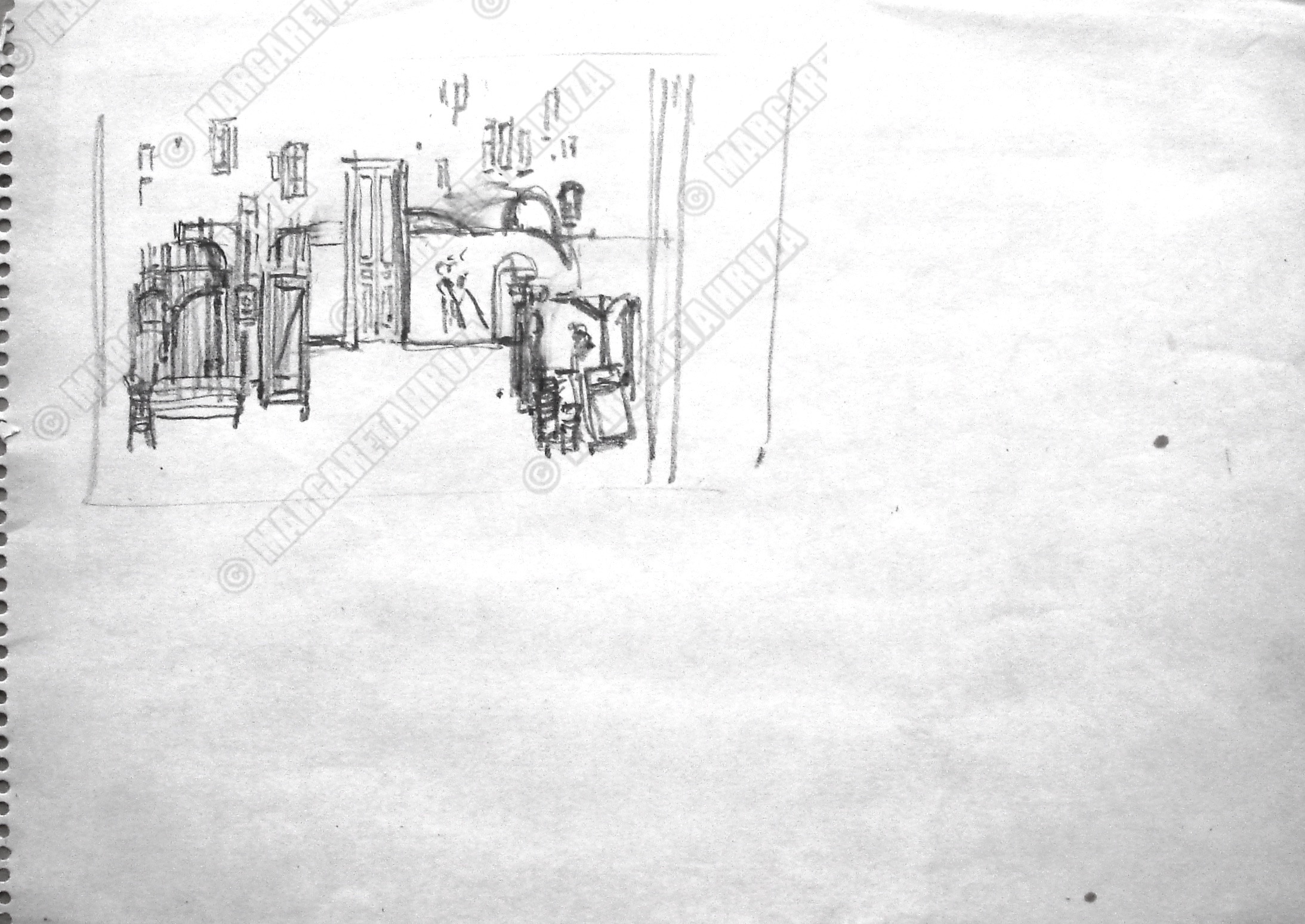 Sketch by Lubos Hruza, for the stage design for The National Theatre's production Raskolnikov (1968).