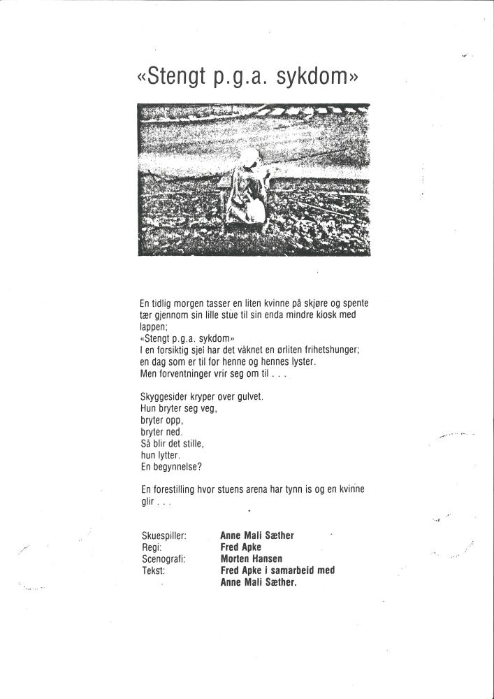Flygeblad fra Boreas Bulreadors produksjon Stengt p.g.a. sykdom (1988)