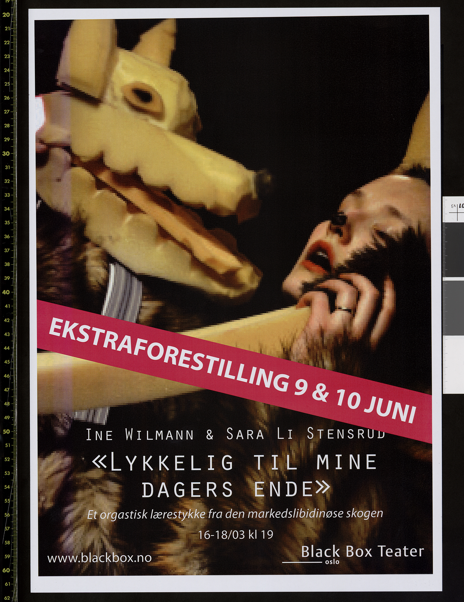 Plakat for Sara Li Stensruds og Ine Wilmanns produksjon Lykkelig til mine dagers ende (2012)
