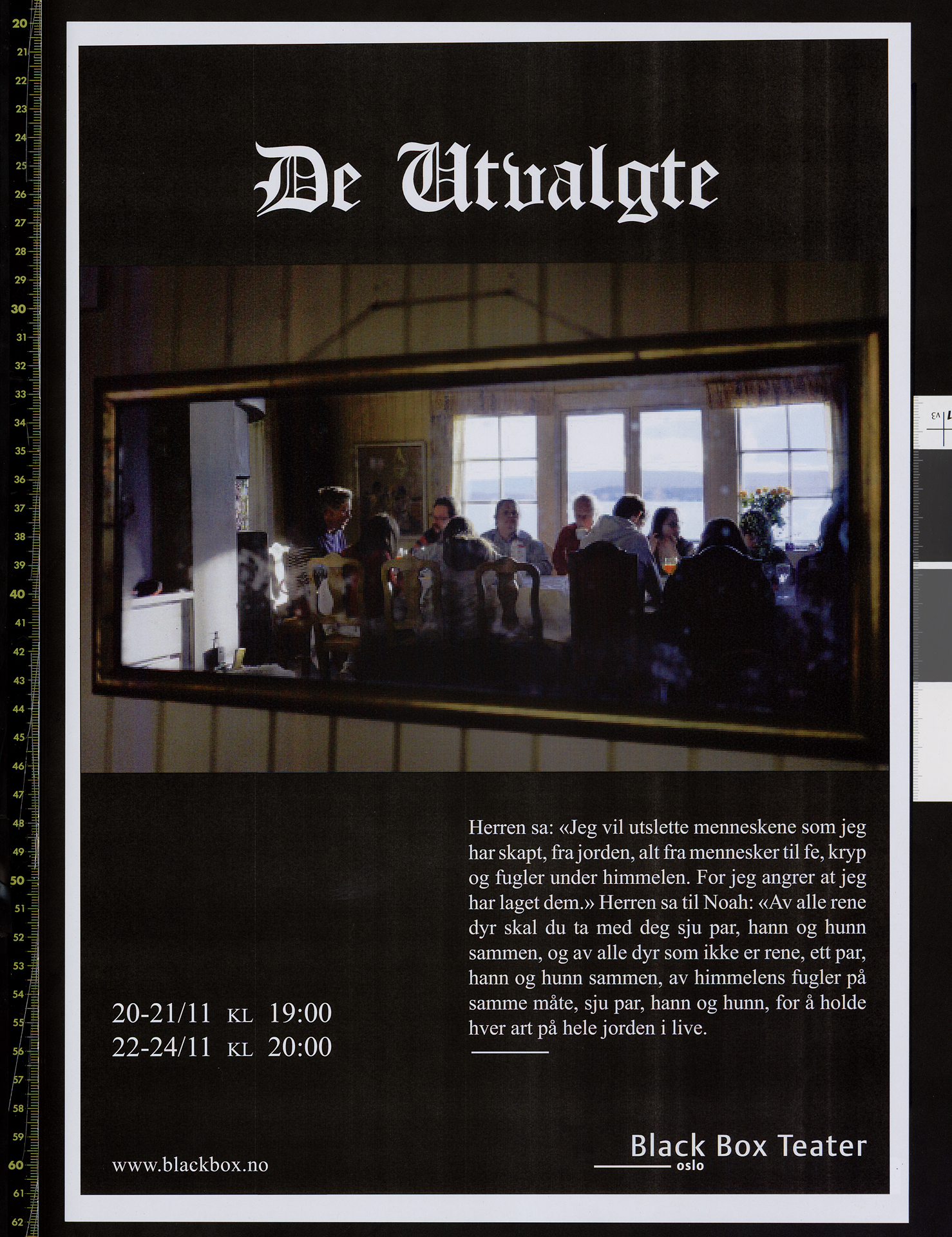 Poster for De Utvalgte's production De Utvalgte (2012). The poster is from the performances at Black Box Teater in 2012.