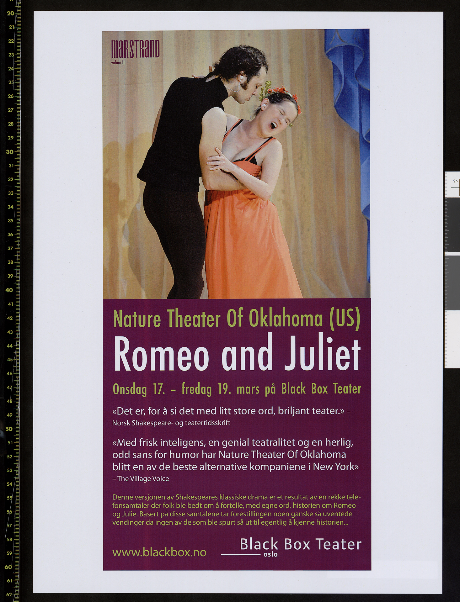 Poster for Nature Theater of Oklahoma's production Romeo and Juliet (2009). The poster was made for the performance at Black Box Teater in 2010.