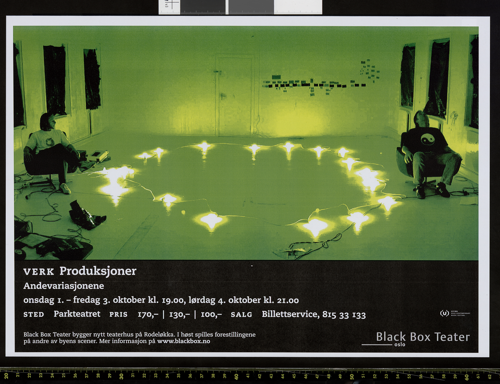 Poster from Verk Productions's production The Duck Variations (2003). The poster is from performance on the Black Box Theater/Parkteatret at 2003.