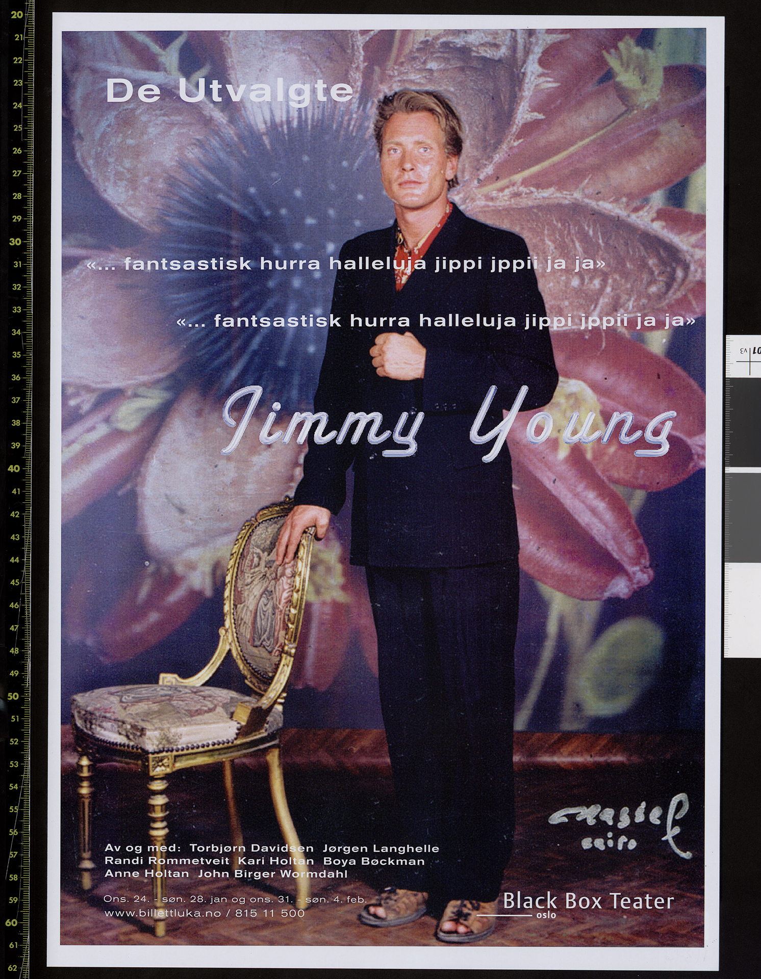 Poster for De Utvalgte's production Jimmy Young (2007). The poster is from the performances at Black Box Teater 2007.