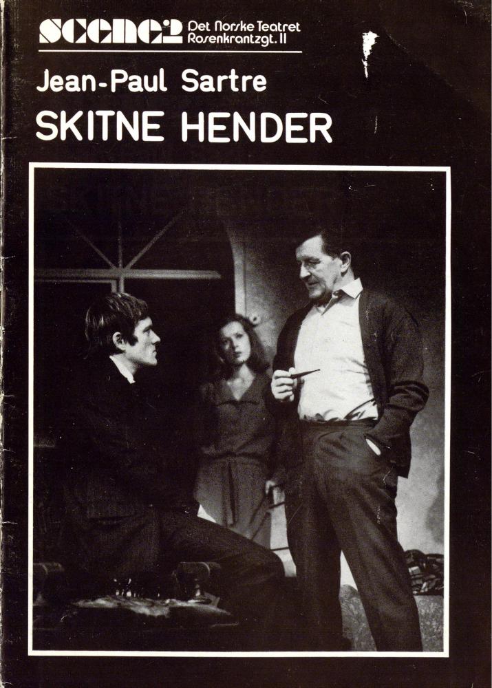 Program fra Det Norske Teatrets produksjon Skitne hender (1972).