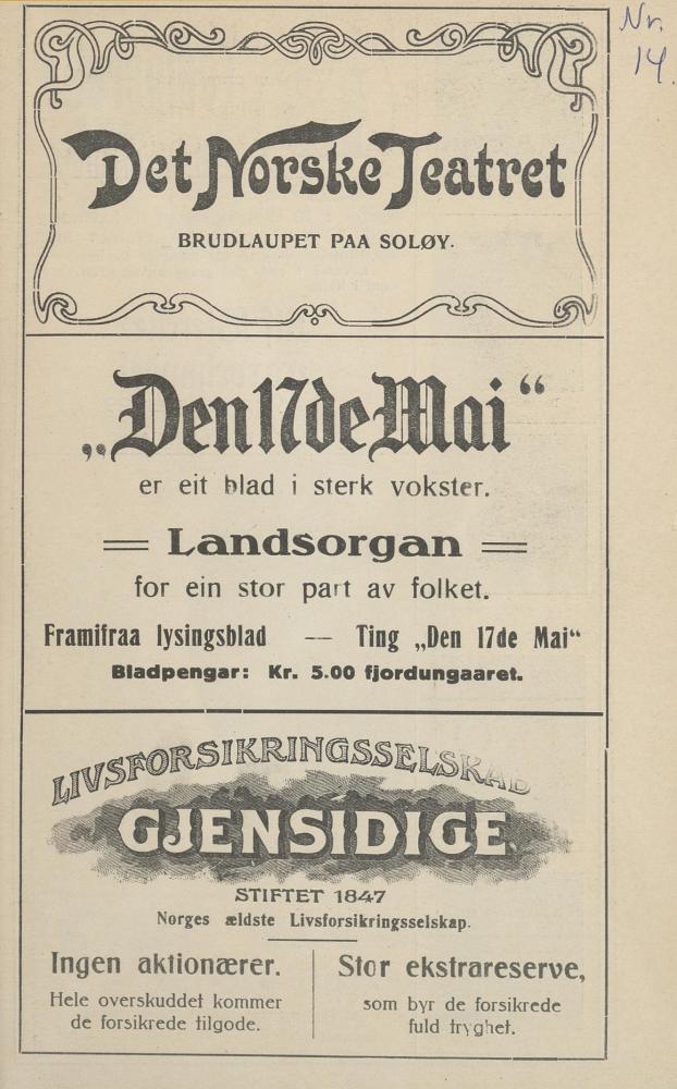 Forestillingsprogram for Det Norske Teatrets produksjon Brudlaupet på Soløy (1921)