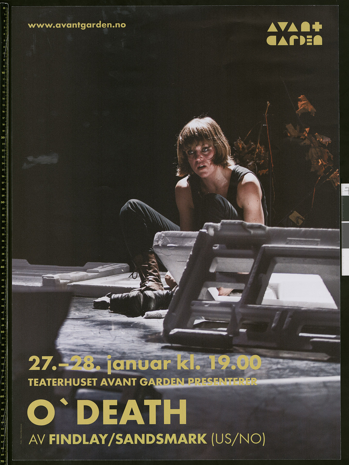 Poster for Findlay//Sandsmark's production O'death (2015). The poster advertised the performance at Avant Garden in 2017.