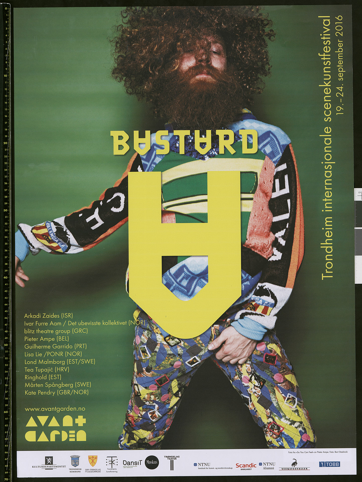 Plakat for Teaterhuset Avant Gardens festival Bastard - Trondheim internasjonale scenekunstfestival , 2016.