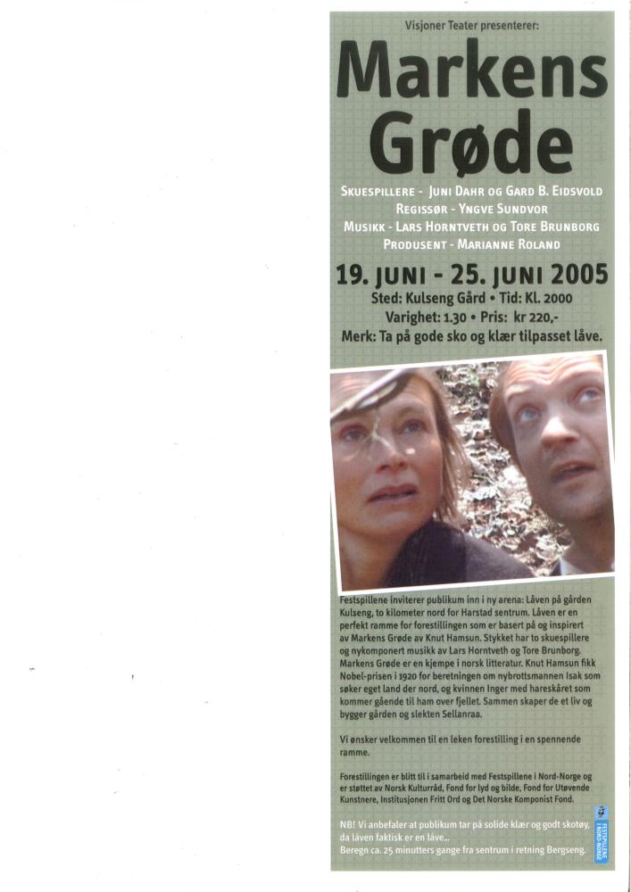 Flyer from Visjoner Teater's production Growth of the Soil (2005).