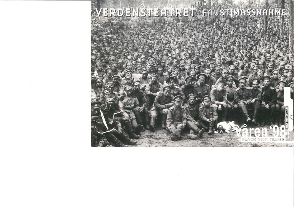Flygeblad for Verdensteatrets produksjon Faust/Die Massnahme (1998).