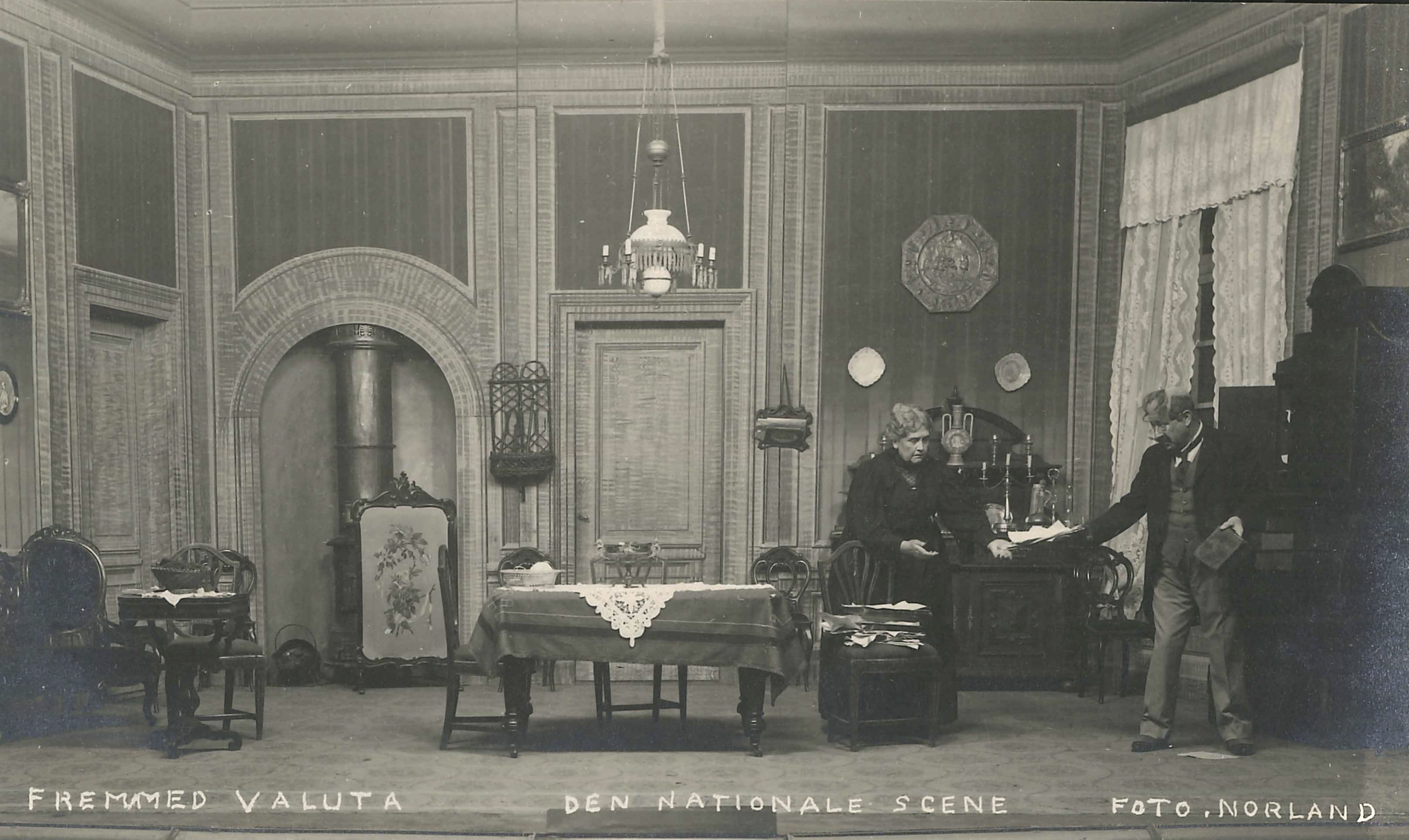 Fotografi fra Den Nationale Scenes produksjon Fremmed valuta (1924).