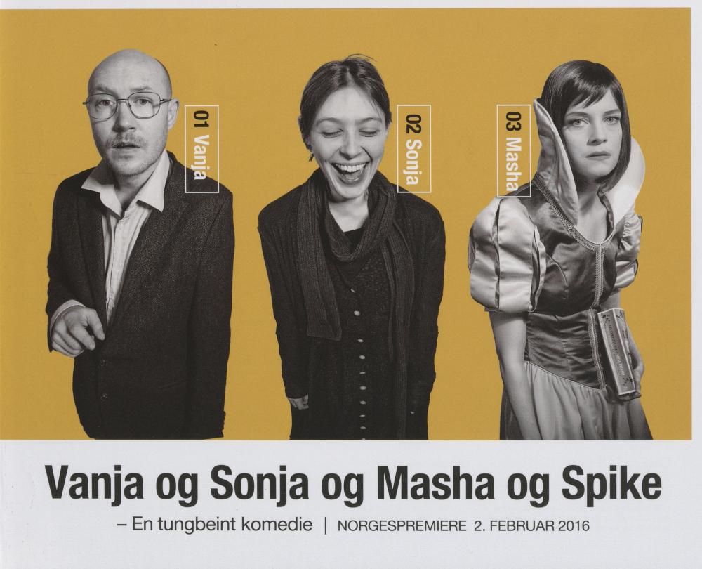 Forestillingsprogram for Rogaland Teaters produksjon Vanja og Sonja og Masha og Spike (2016).