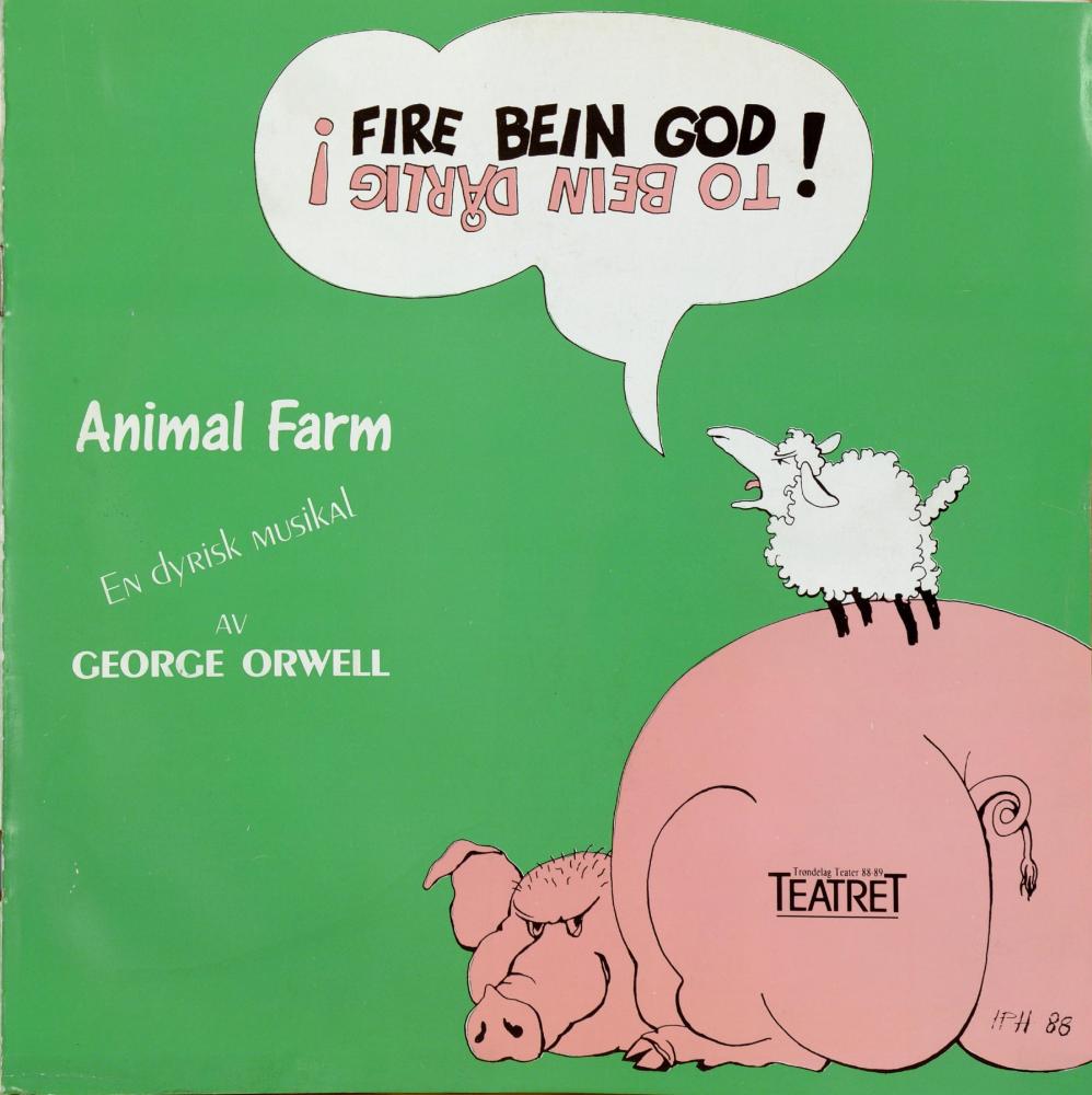 Forestillingsprogram for Trøndelag Teaters produksjon Animal Farm. Fire bein god! To bein dårlig! (1989).
