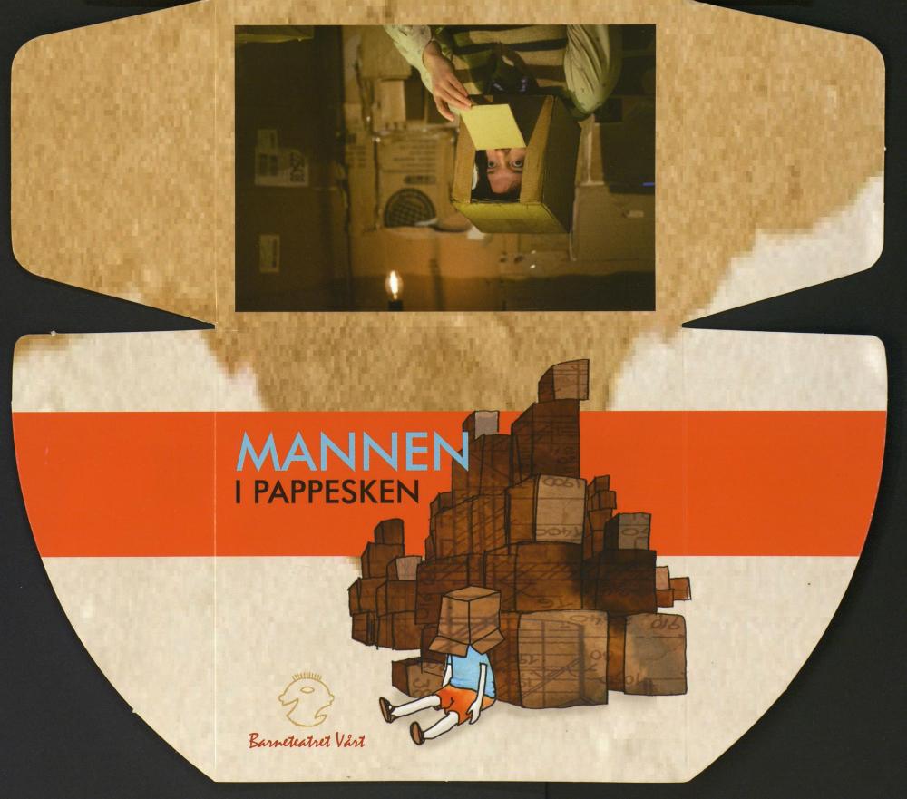 Forestillingsprogram for Teatret Vårts produksjon Mannen i pappesken (2015).