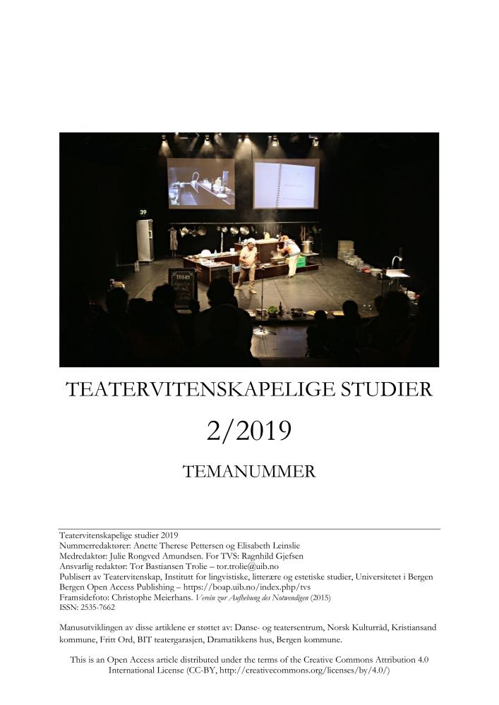 Teatervitenskapelige studier 2/2019 Temanummer.