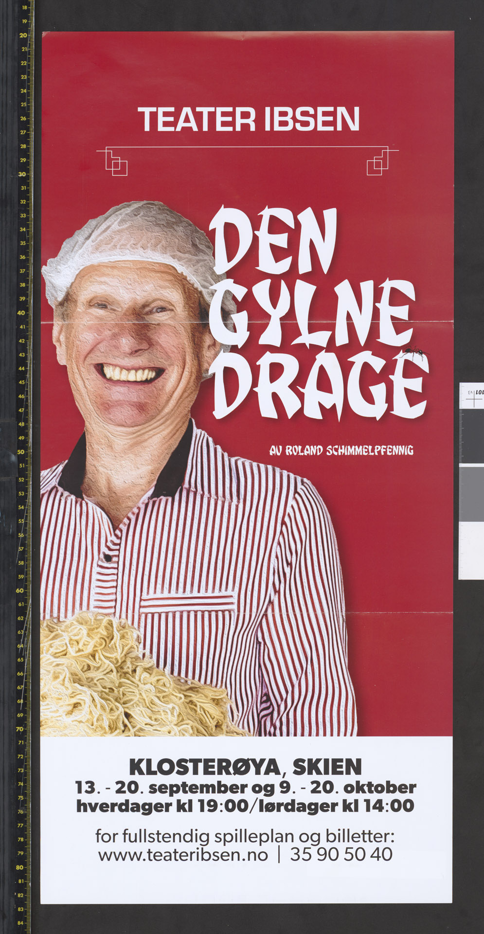 Plakat for Teater Ibsens produksjon "Den gylne drage" (2018).