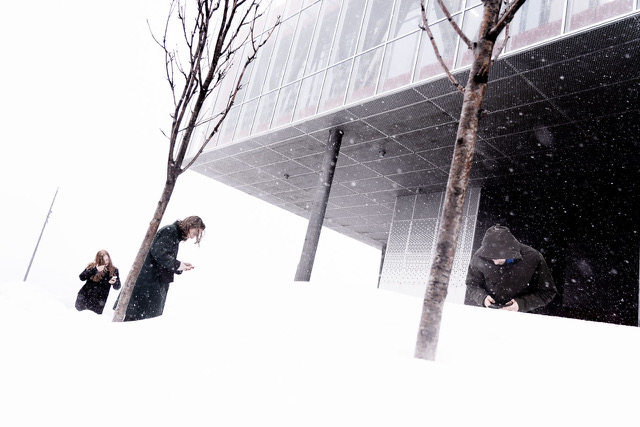 Photo from Ferske Scener's production Talking in the Rain (2019). The photo is from a residency at Dansearena Nord in Hammerfest in April 2019.