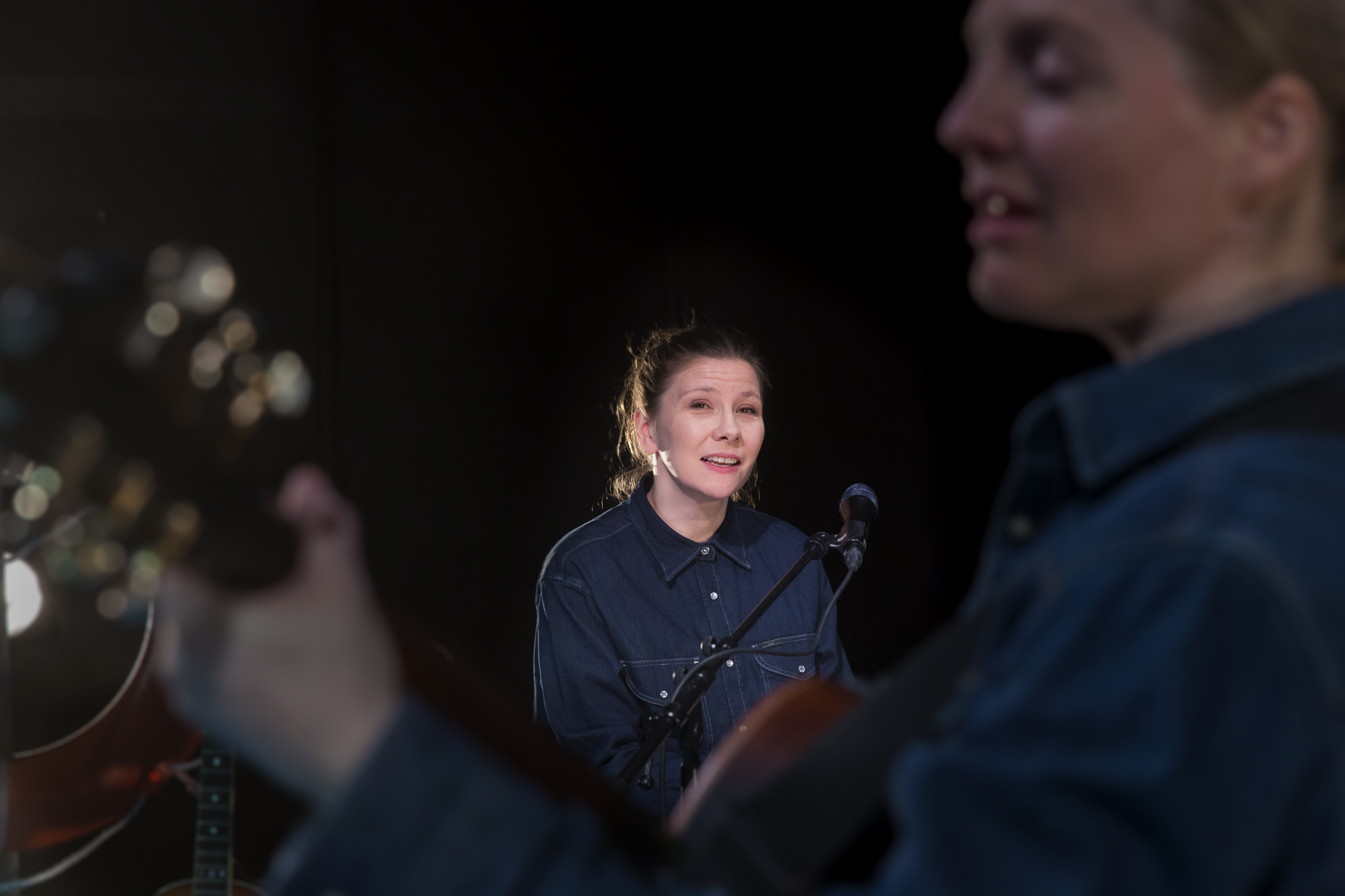Fotografi fra Hålogaland Teaters produksjoner Blå åker (2019) og Blå åker. Digital versjon (2020).