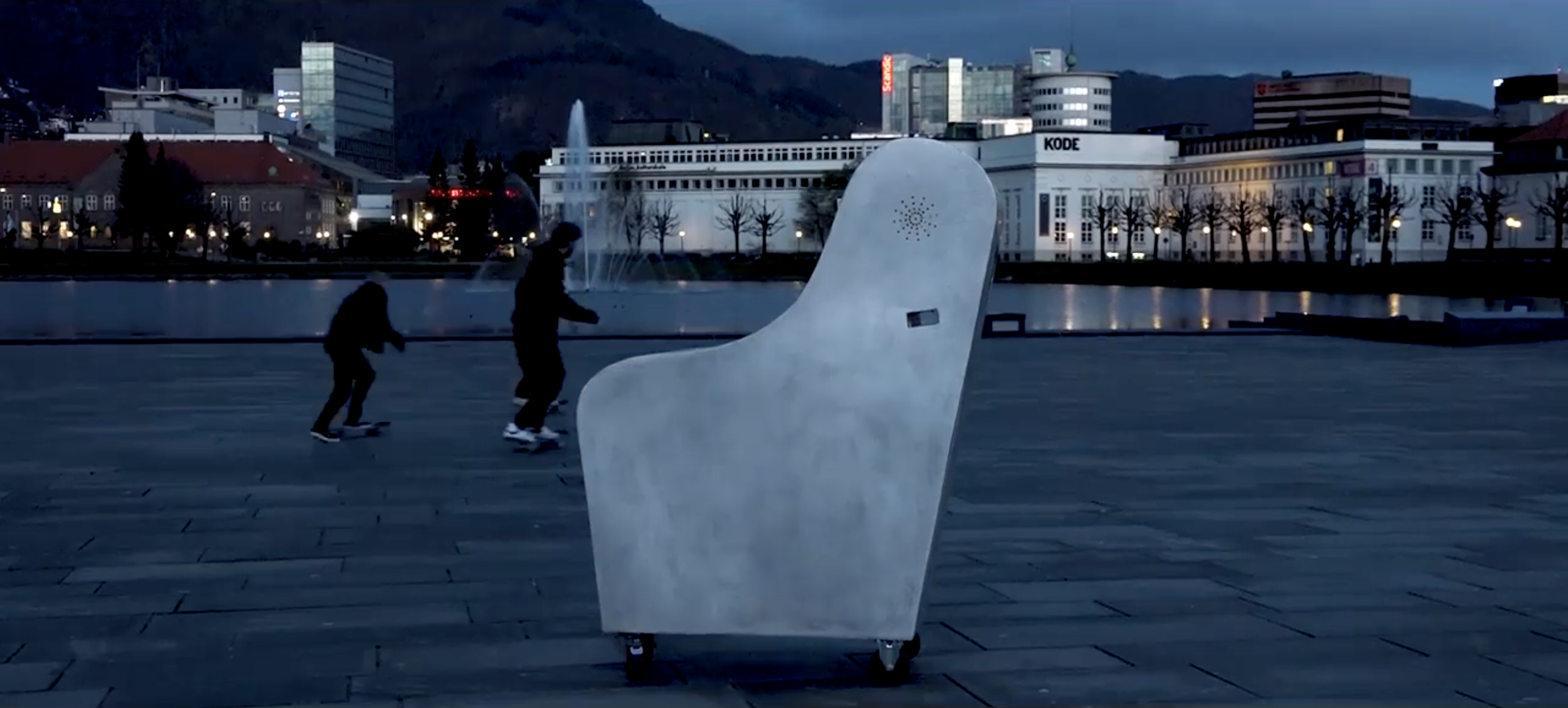 Videostillbilde fra Sam Carvalho og ON/OFFs installasjon Kopf Kino (2020).