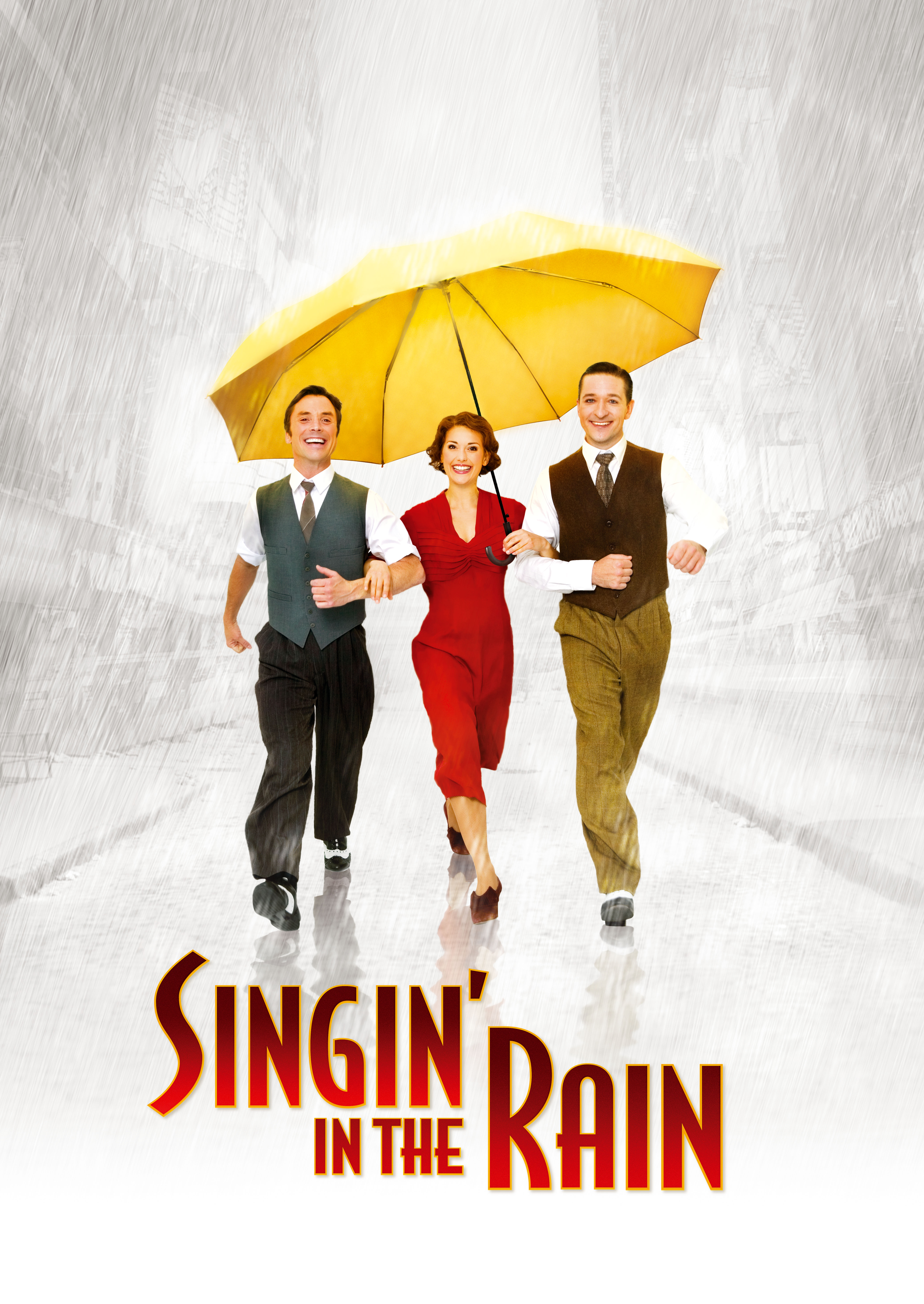 Plakat for Oslo Nye Teaters produksjon Singin' in the rain (2008), til nypremieren i september 2008.