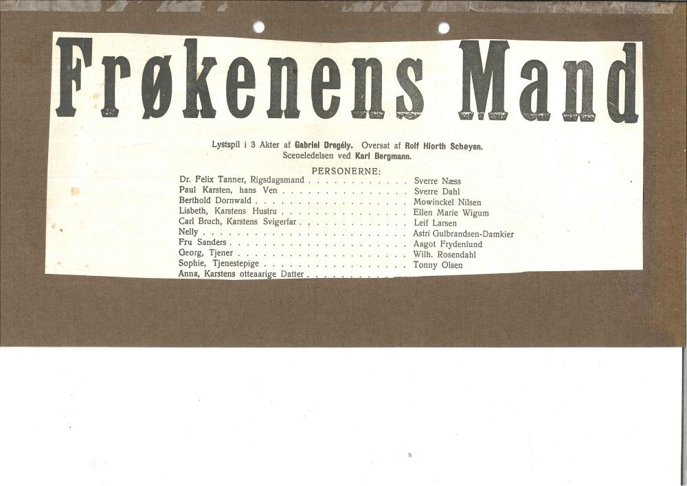 Forestillingsprogram for Den Nationale Scenes produksjon Frøkenens mand (1918)