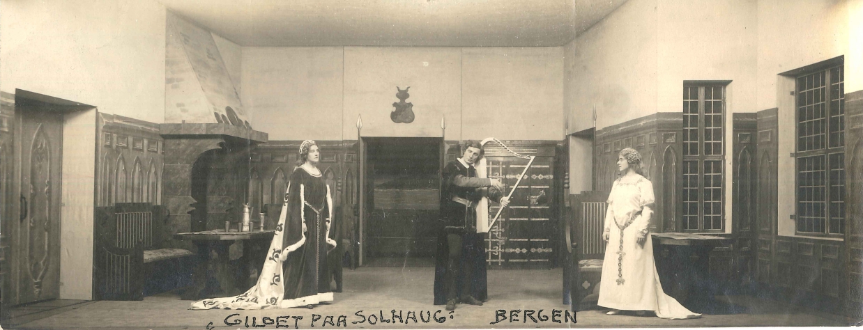 Fotografi fra Den Nationale Scenes produksjon Gildet paa Solhaug (1917)