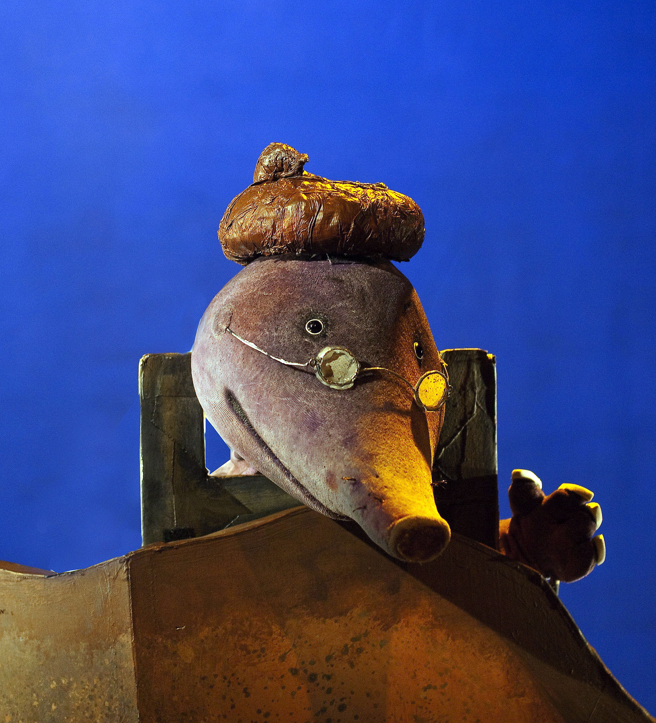 Fotografi for Oslo Nye Teater og Riksteatret produksjon Den lille muldvarpen som ville vite hvem som hadde bæsjet på hodet hans (2005)