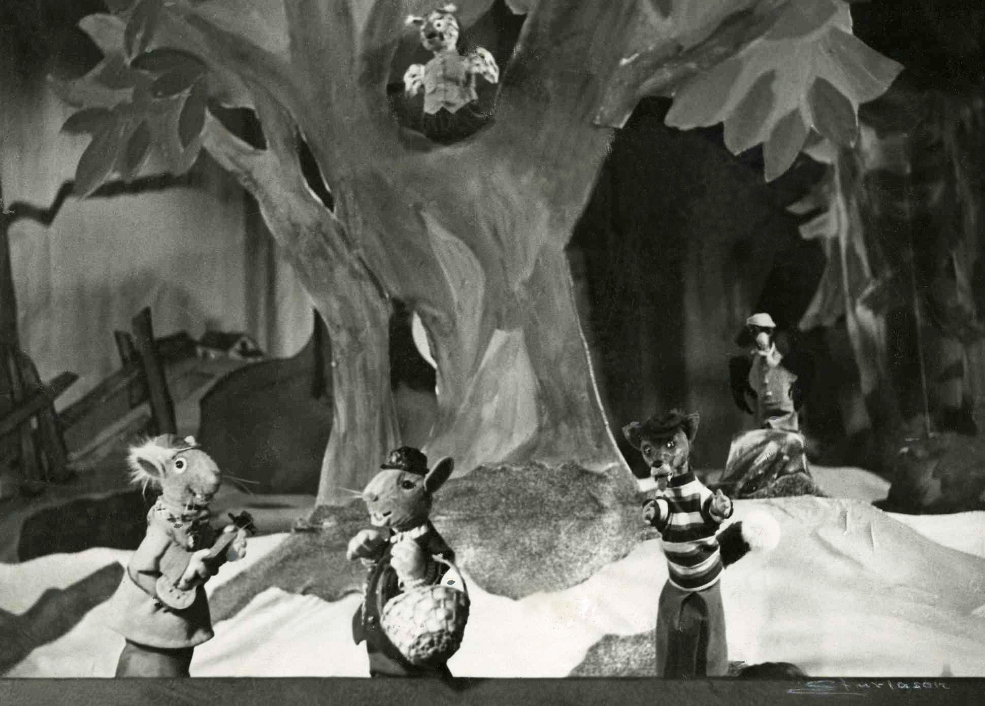 Fotografi fra Oslo Nye Teaters produksjon Dyrene i Hakkebakkeskogen (1959)