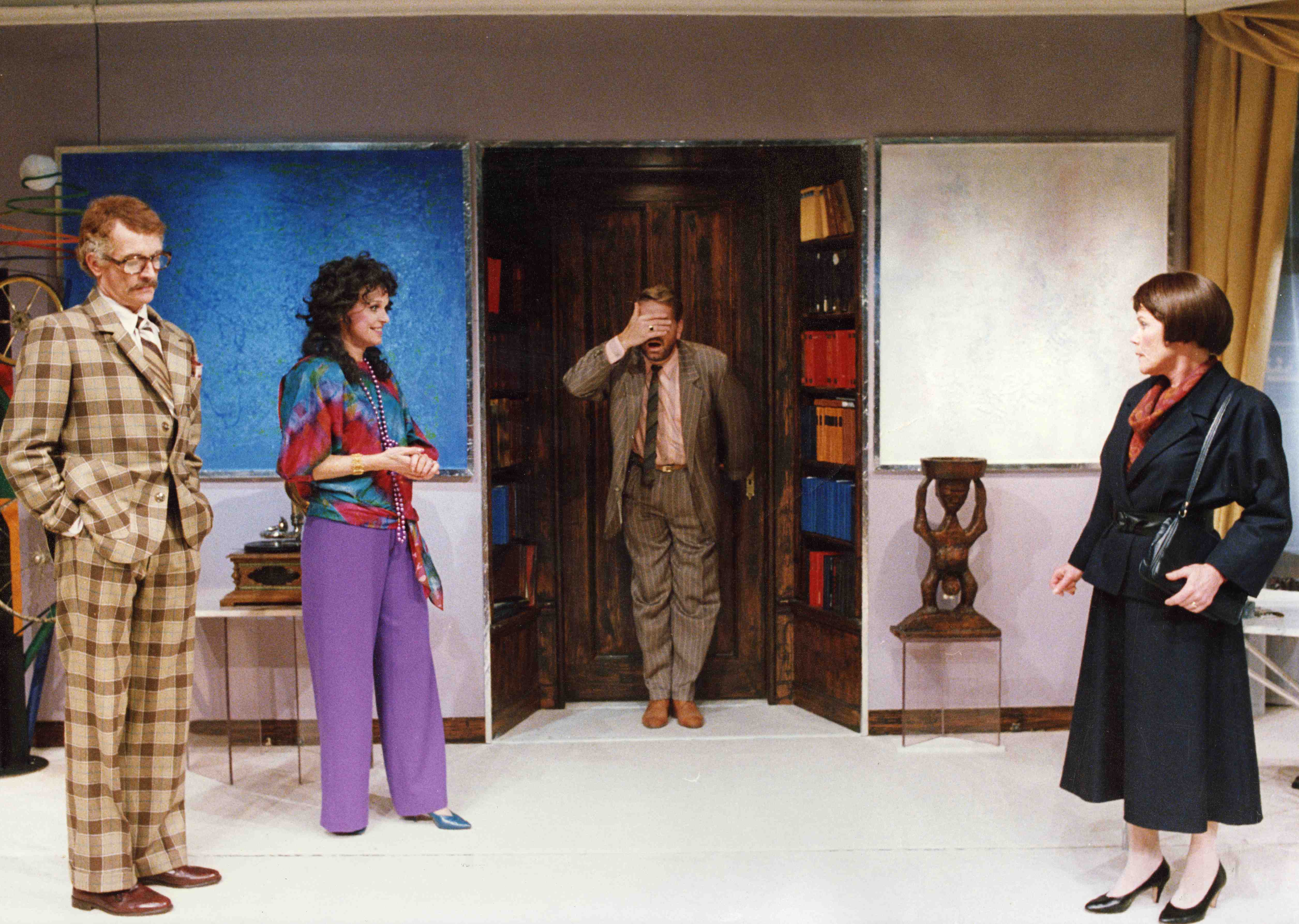 Fotografi fra Oslo Nye Teaters produksjon Amors piler - ruster ikke (1987) .