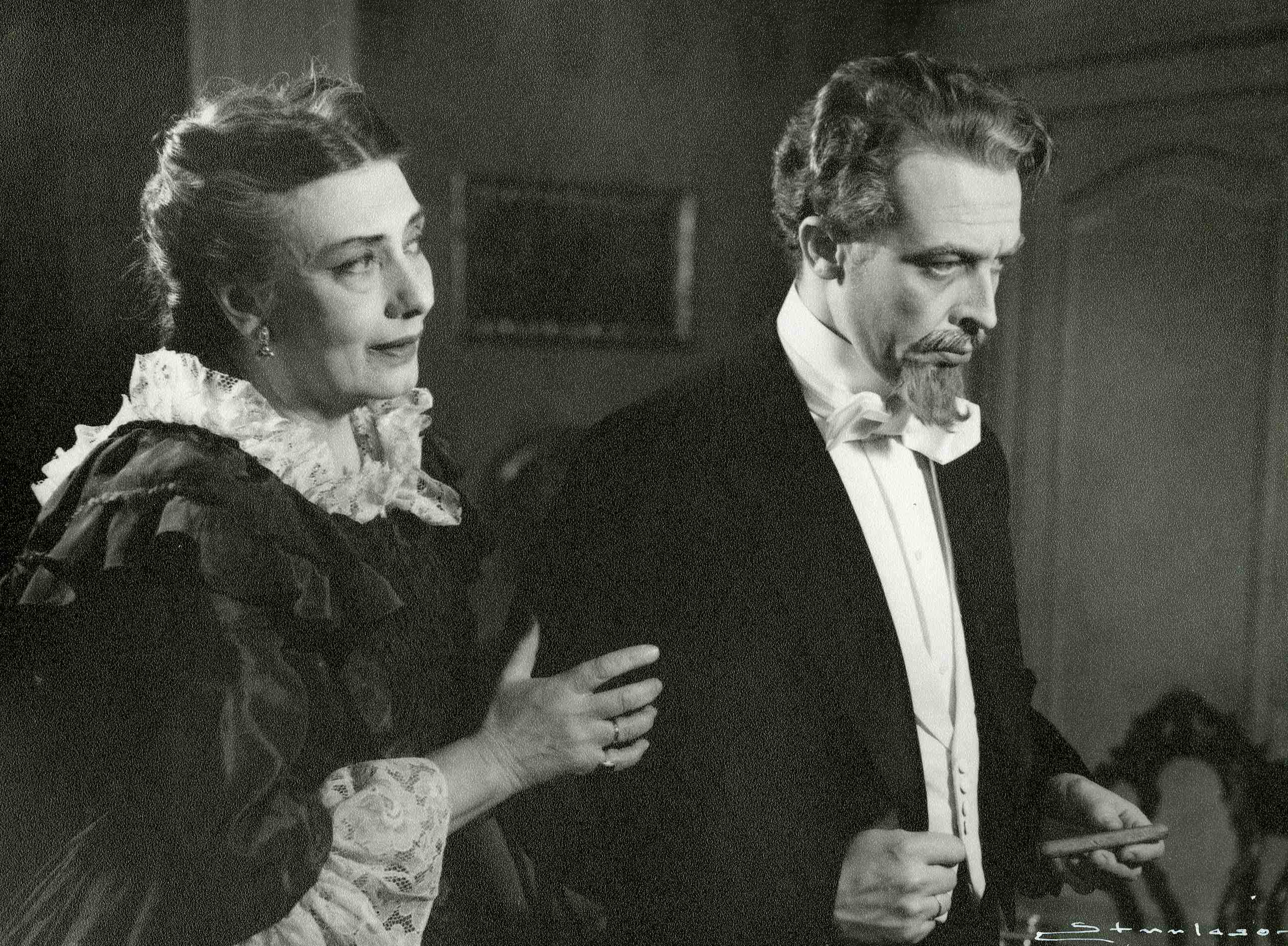 Fotografi fra Det Nye Teaters produksjon Arvingen (1952).