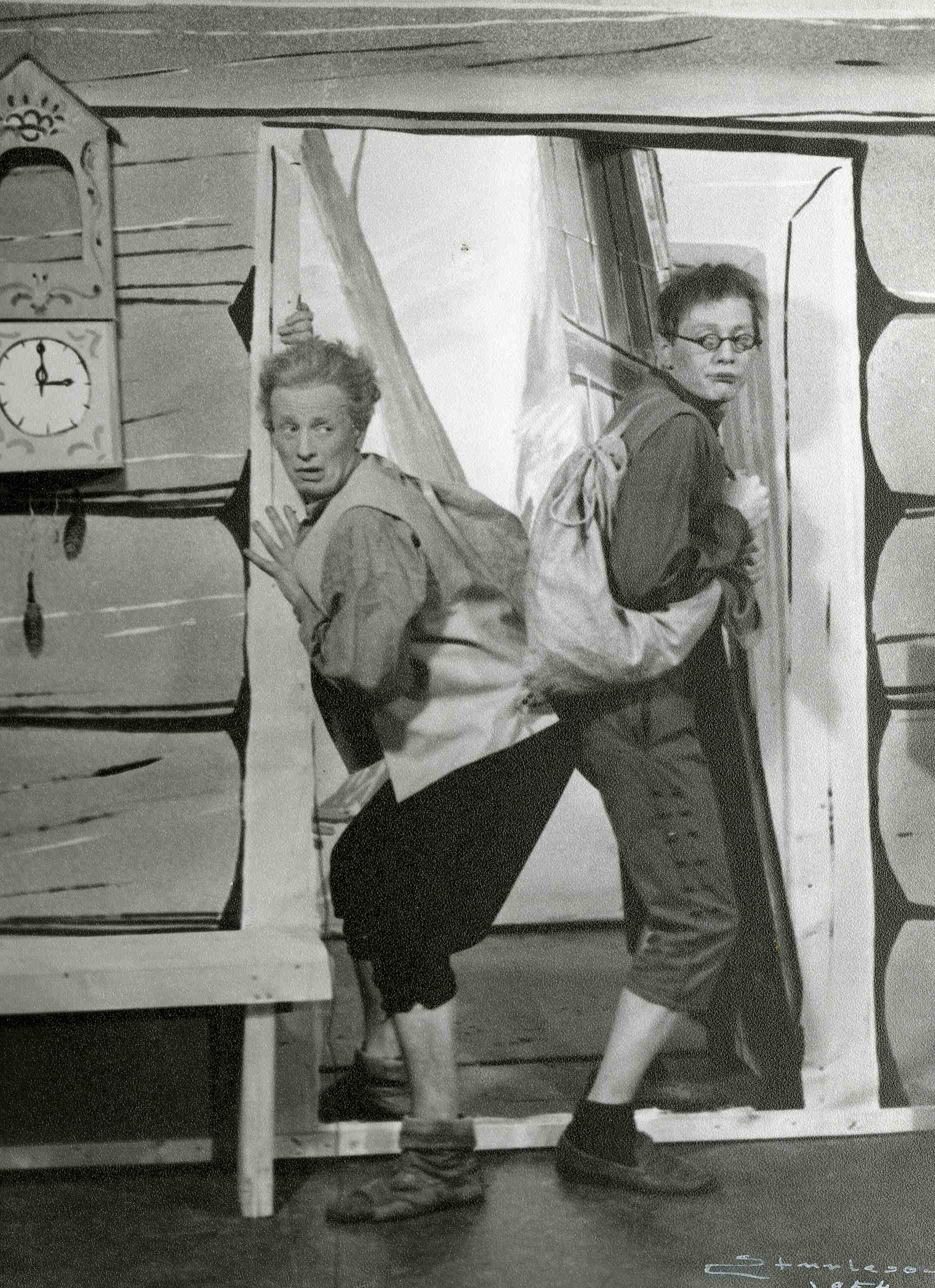 Fotografi fra Det Nye Teaters produksjon Tryllekosten (1954).