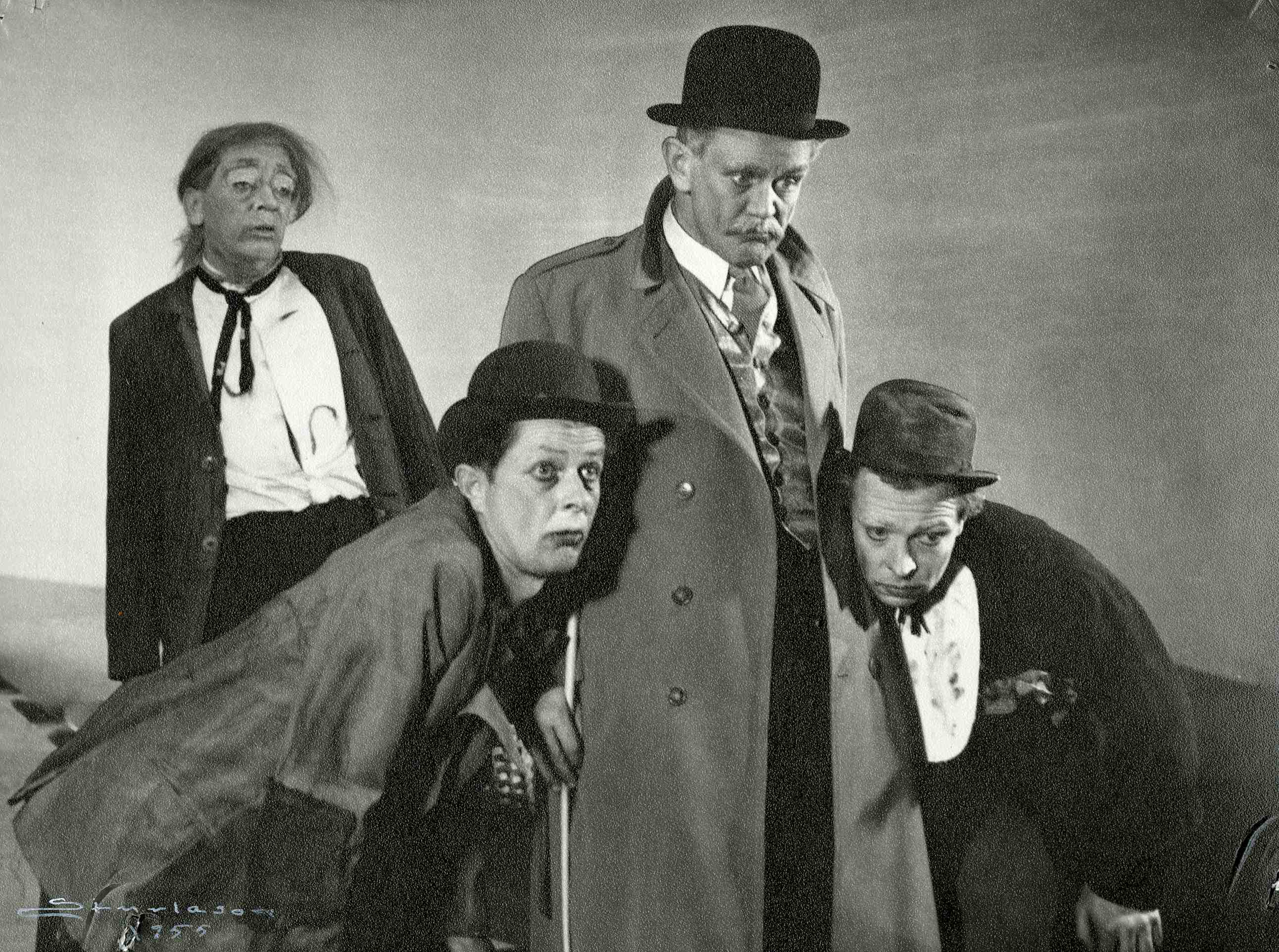 Fotografi fra Det Nye Teaters produksjon Mens vi venter på Godot (1955).