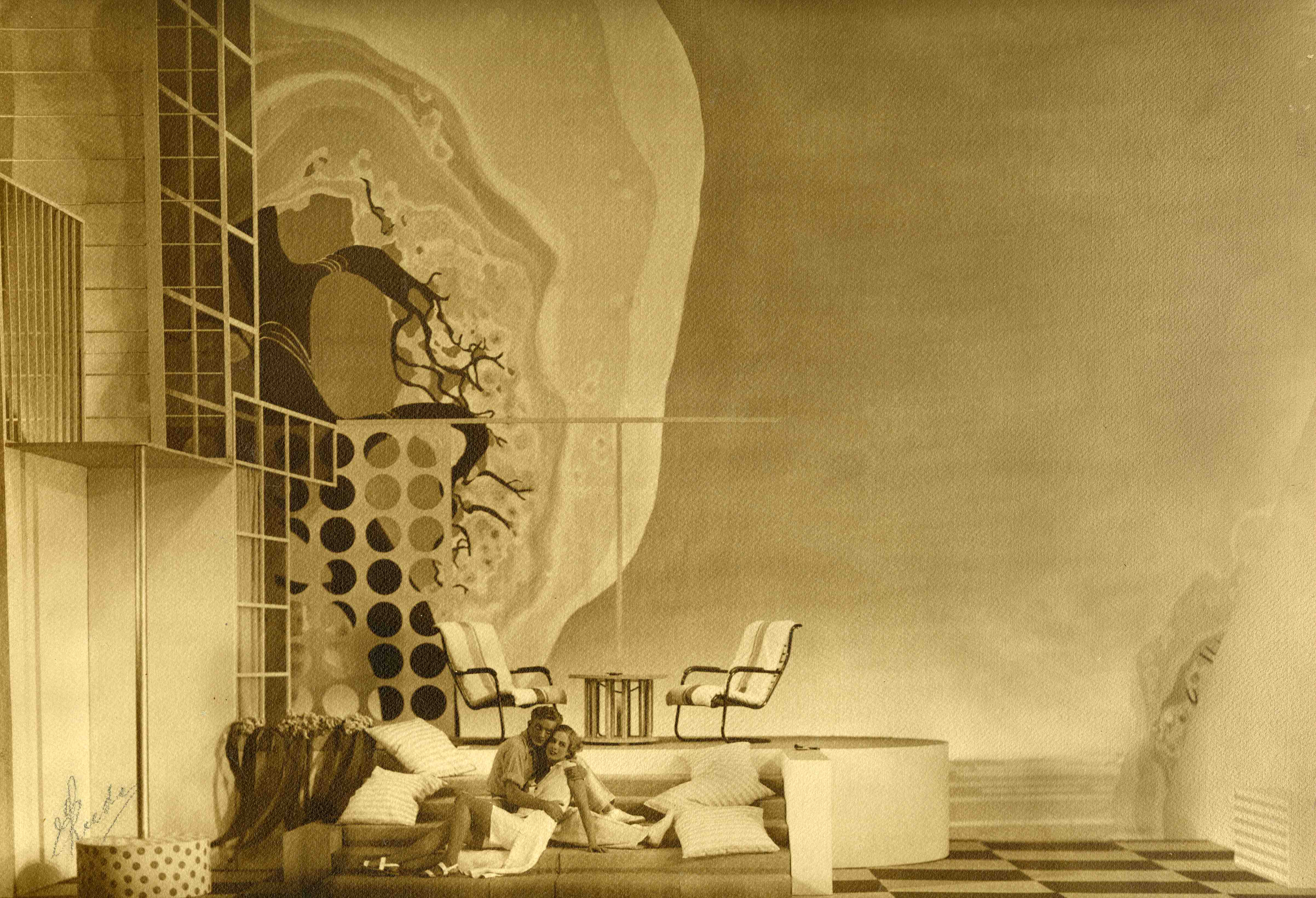 Fotografi fra Det Nye Teaters produksjon av Fire unge mennesker (1933)