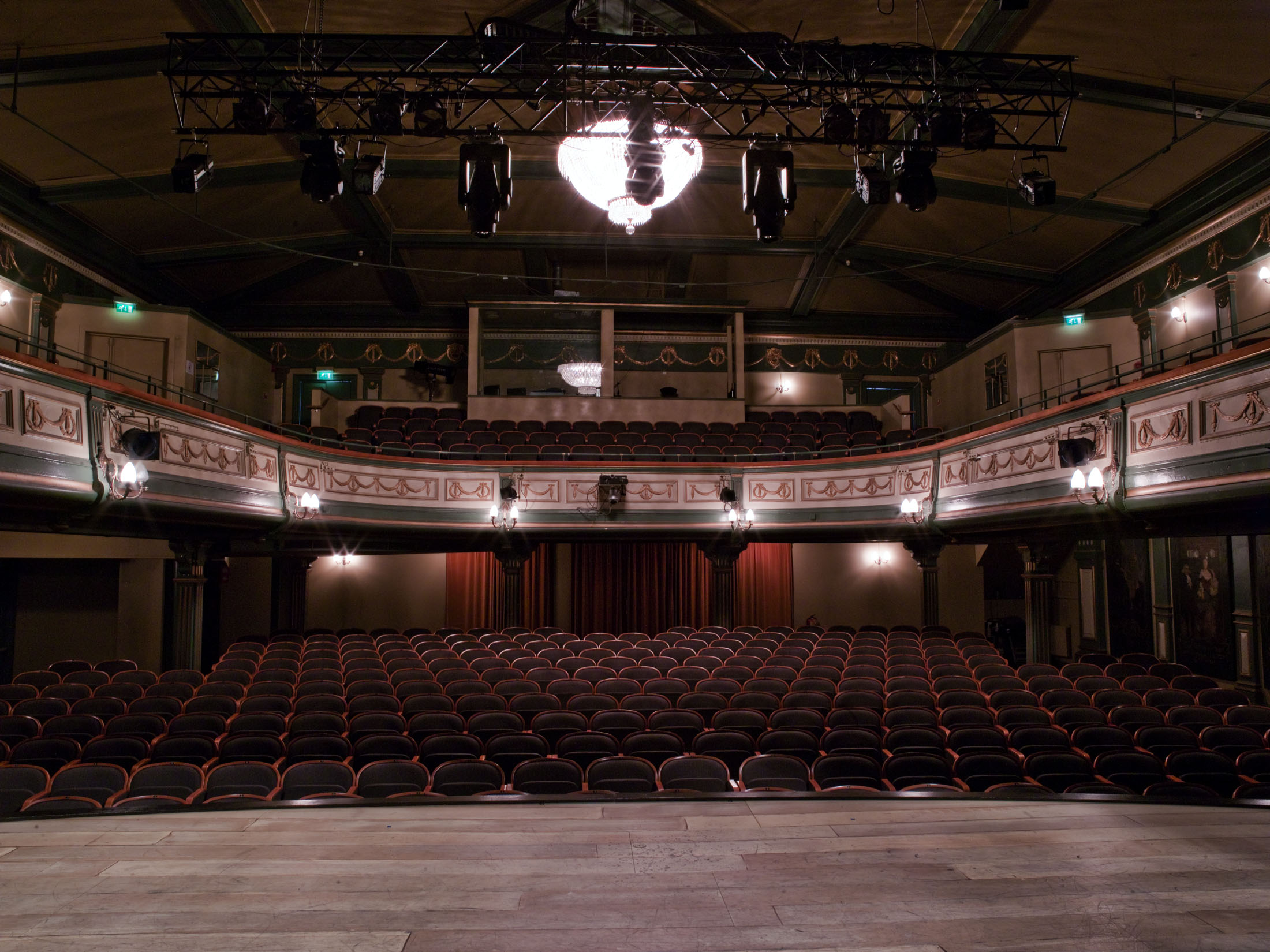 Fotografi av teatersalen i Centralteatret. Fotografiet er tatt fra scenen.