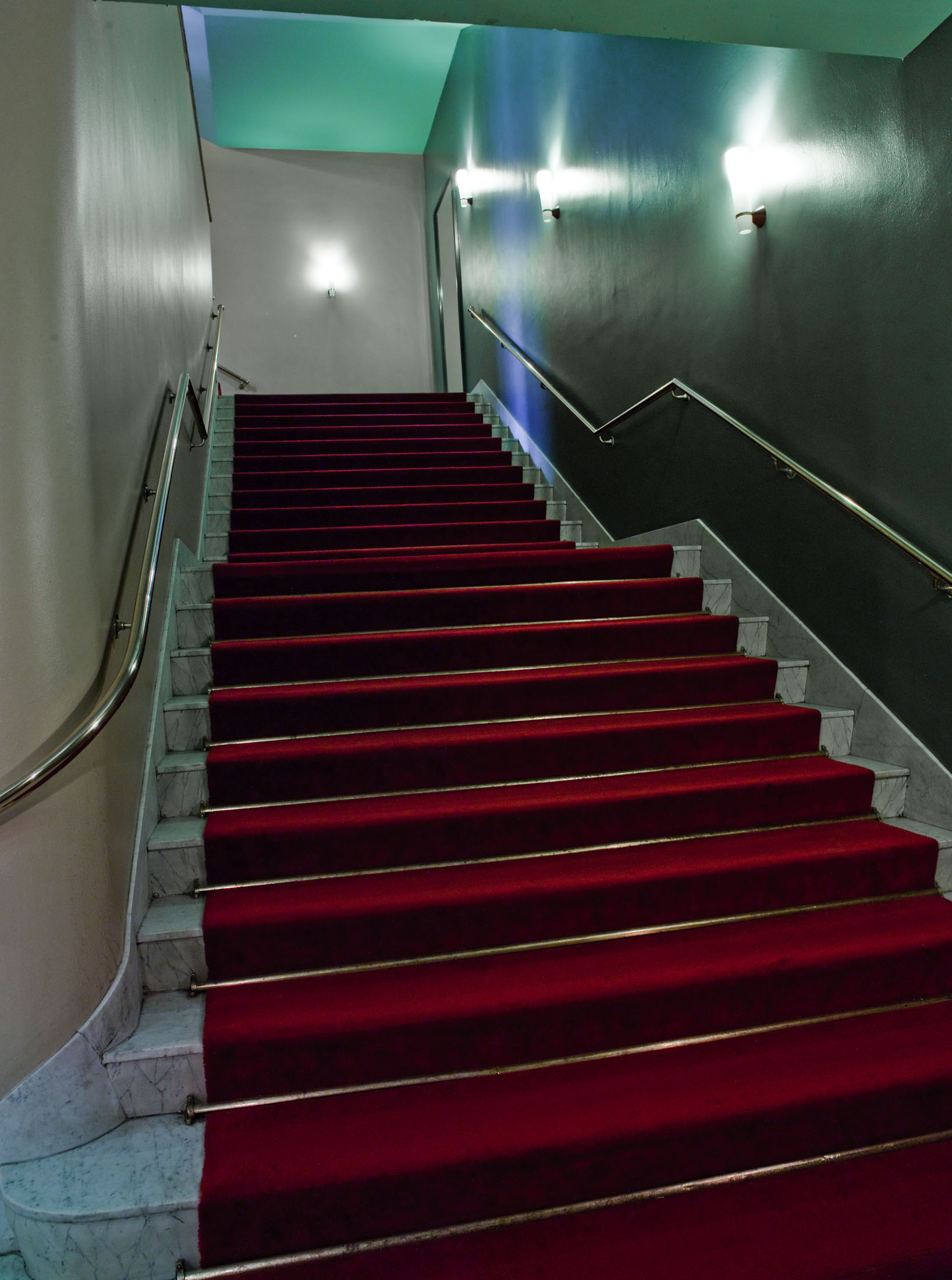 Fotografi av trapp fra 1. til 2. etasje til Hovedscenen i Oslo Nye Teater.