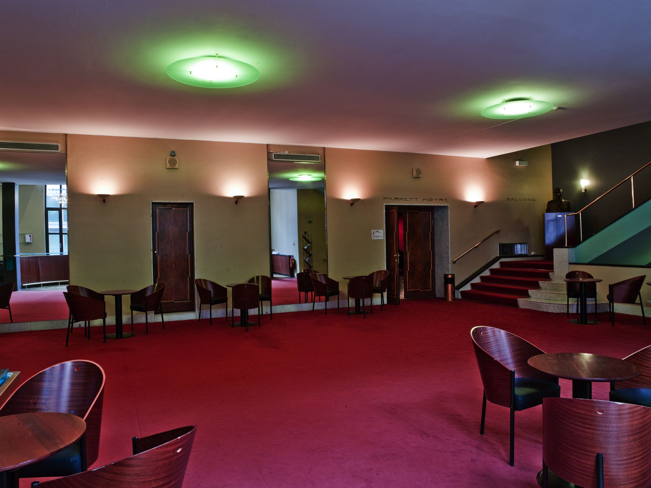 Fotografi av foajéen i 2. etasje til Hovedscenen i Oslo Nye Teater.