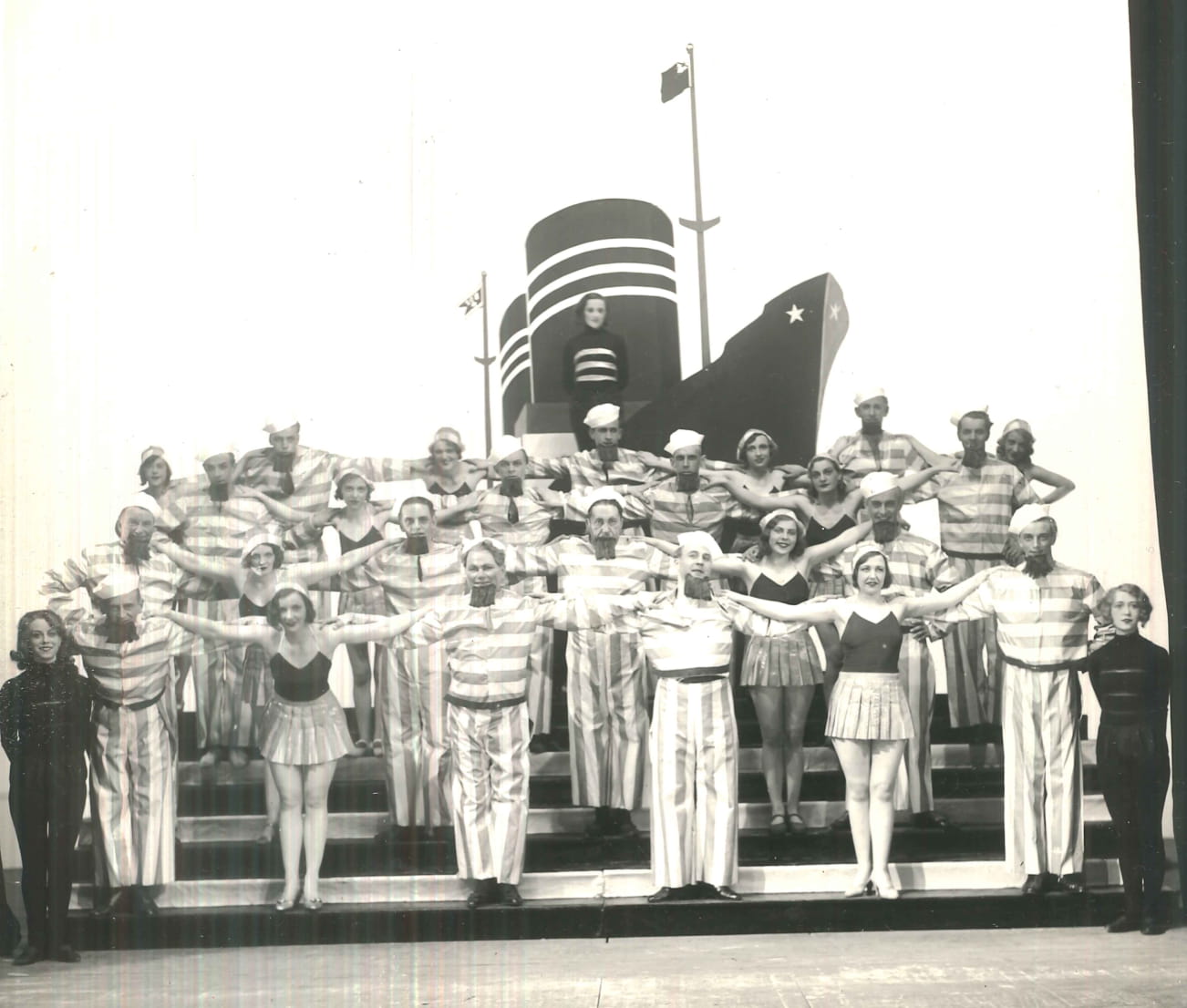Fotografi fra Den Nationale Scenes produksjon Paraden på Engen - Bergensrevyen 1931 (1931).
