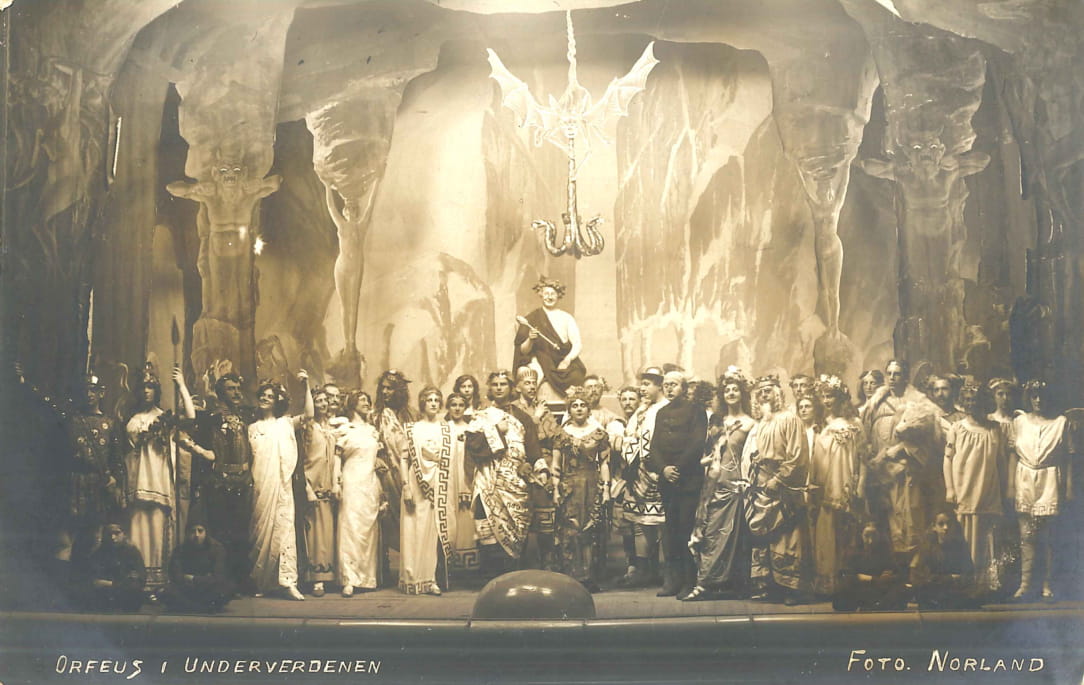 Fotografi fra Den Nationale Scenes produksjon Orfeus i underverdenen (1912).