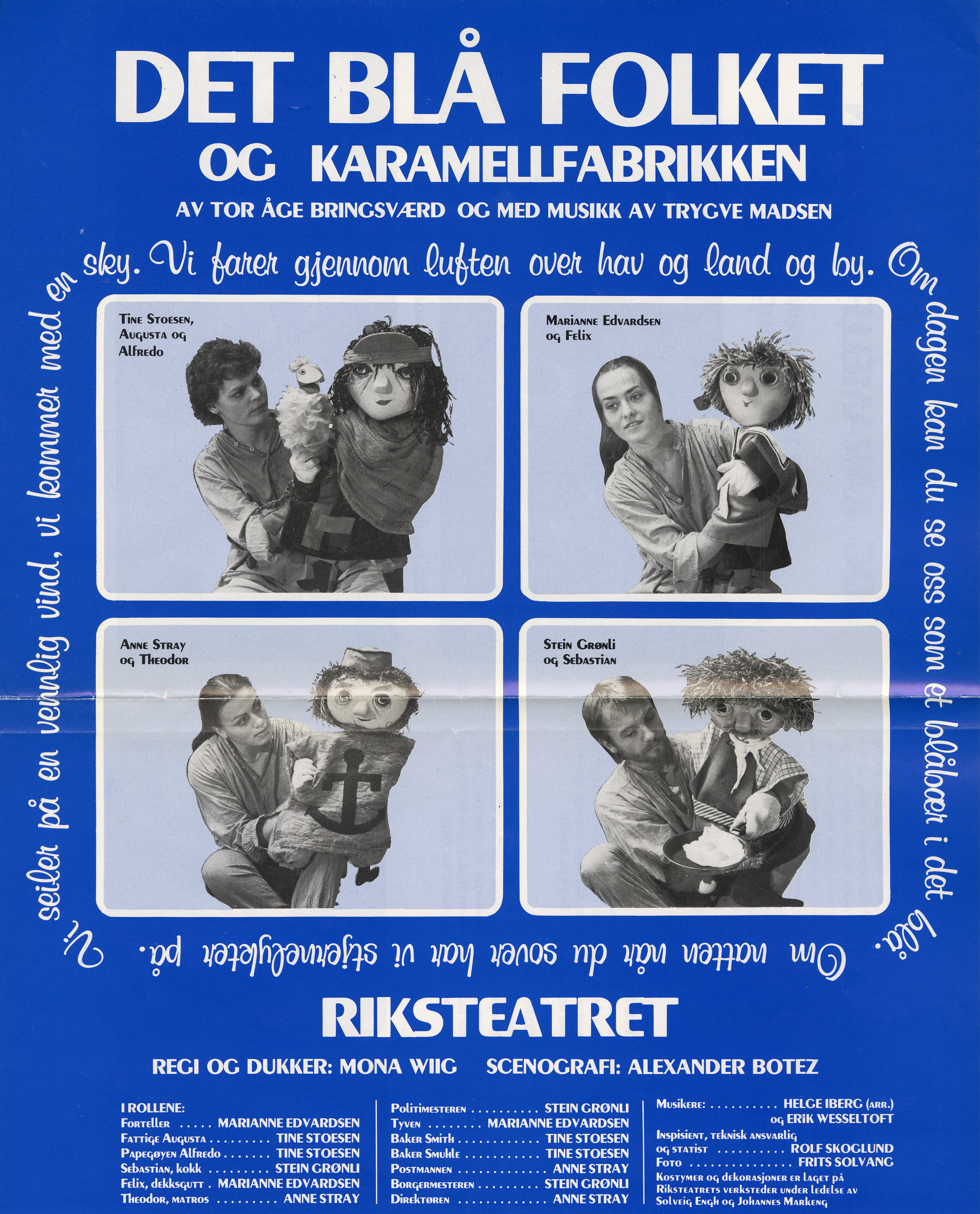 Plakat fra Riksteatrets produksjon Det blå folket og karamellfabrikken (1981).