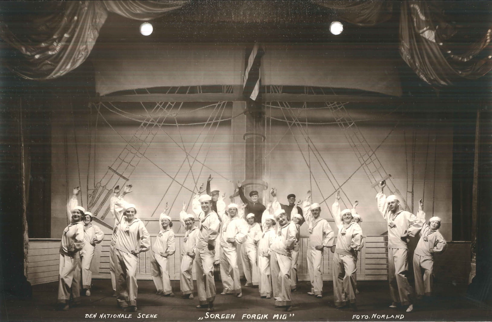 Fotografi fra Den Nationale Scenes produksjon Sorgen forgik mig ... - Bergensrevyen 1929 (1929)