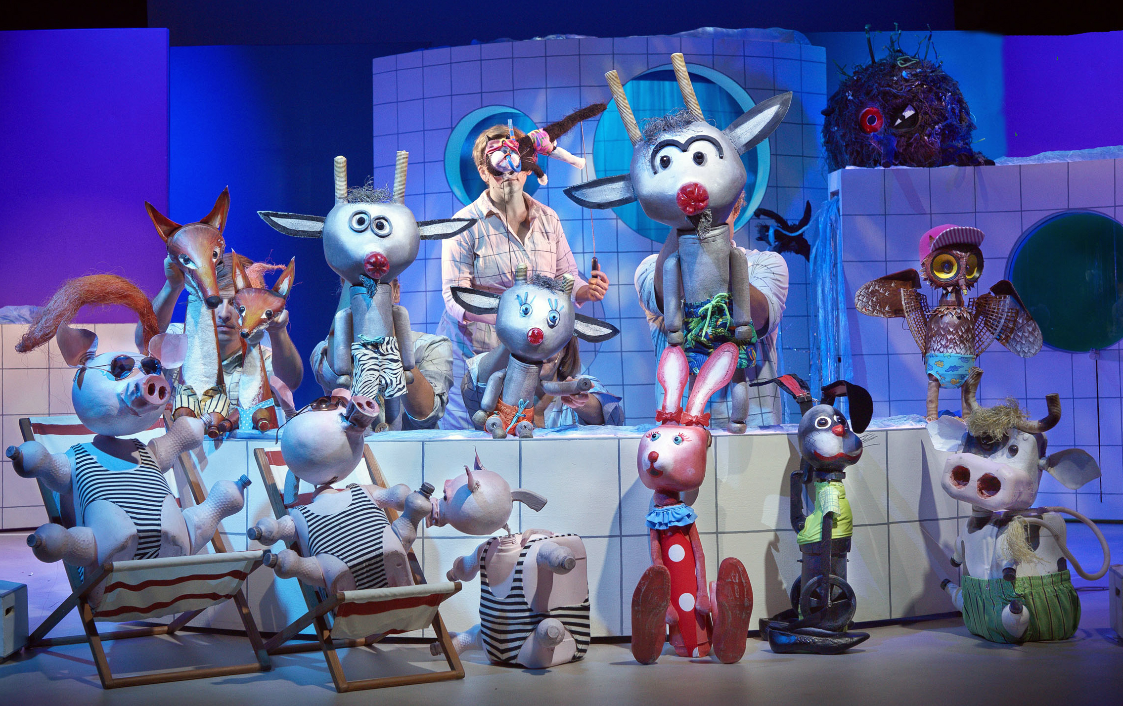 Fotografi fra Oslo Nye Teaters samproduksjon med Riksteatret Bukkene Bruse på Badeland (2015).