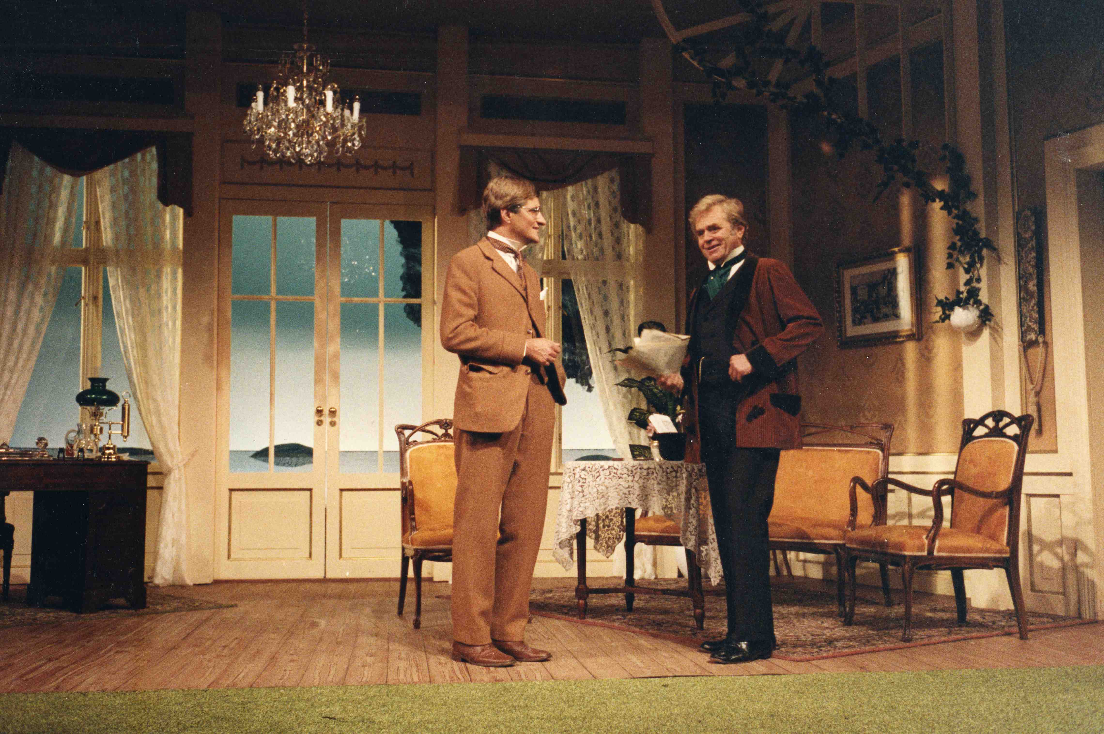 Fotografi fra Oslo Nye Teaters produksjon Det lykkelige valg(1985).