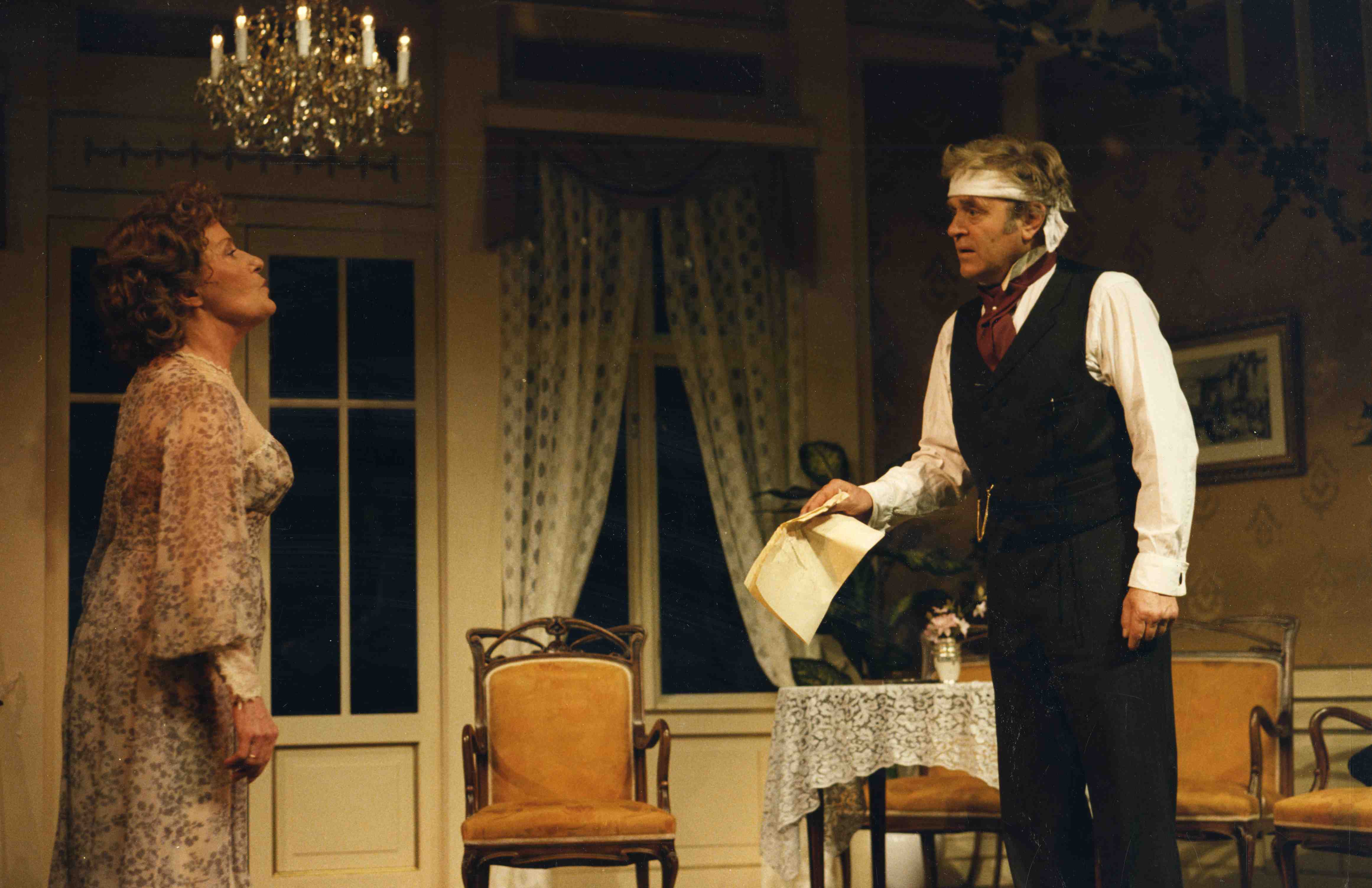 Fotografi fra Oslo Nye Teaters produksjon Det lykkelige valg(1985).