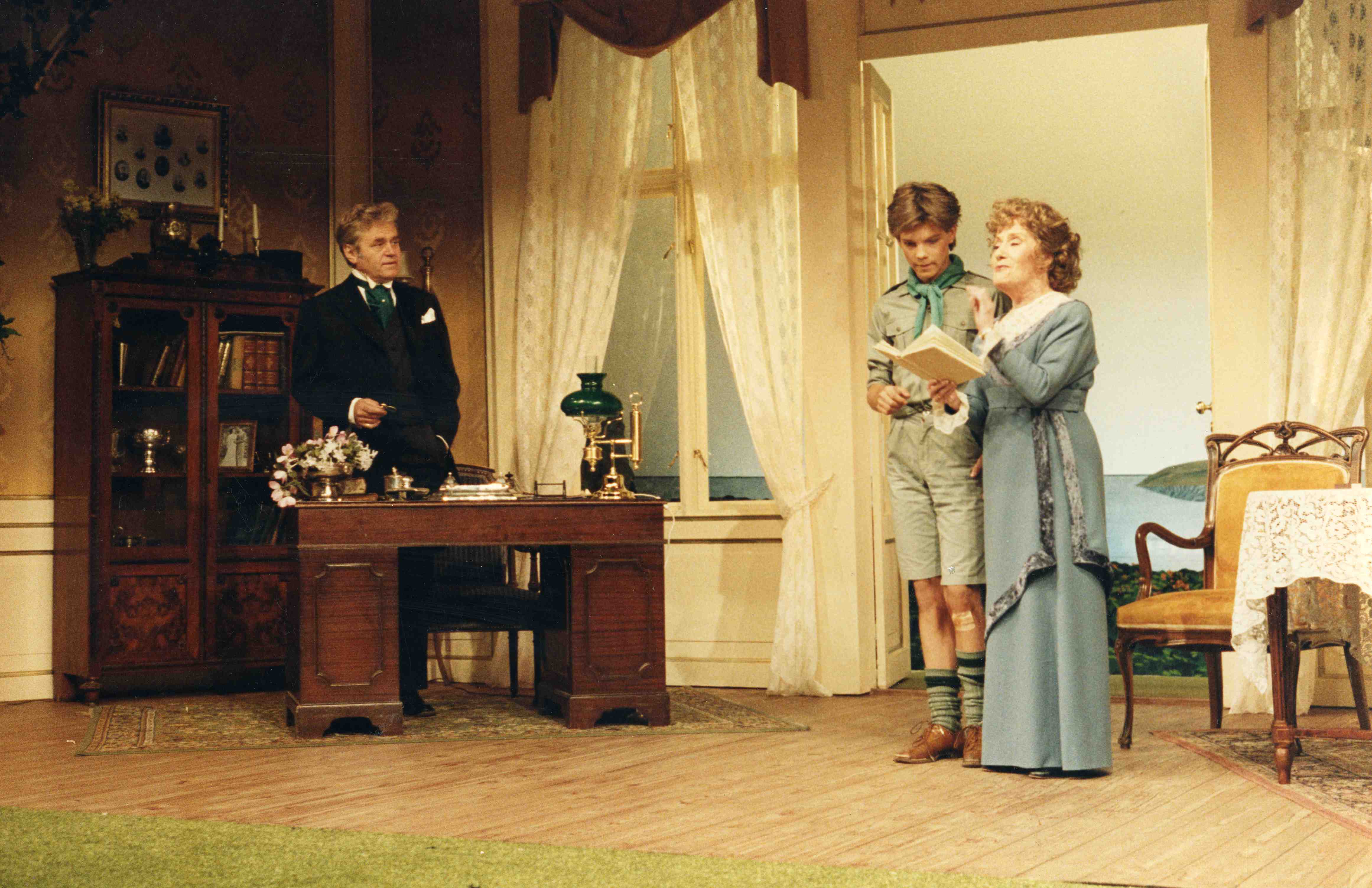 Fotografi fra Oslo Nye Teaters produksjon Det lykkelige valg(1985).