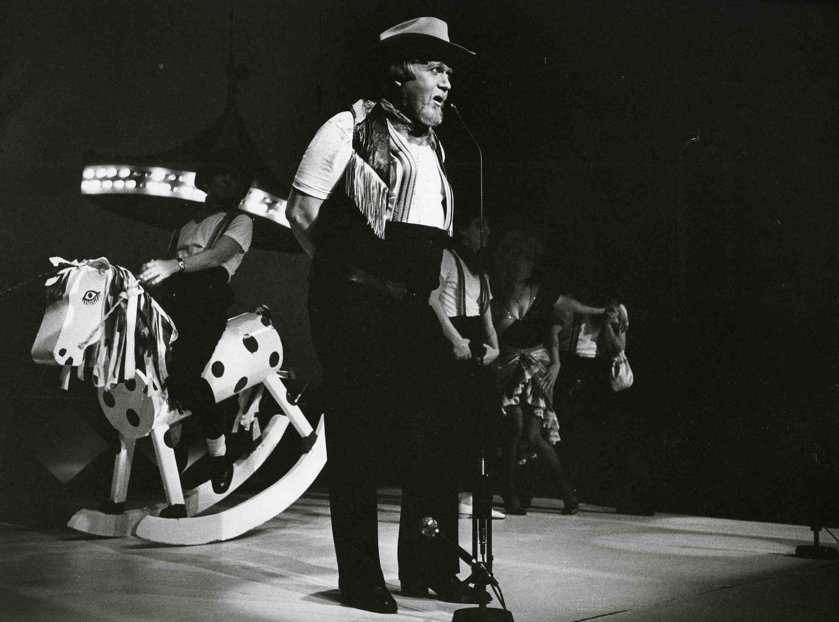Fotografi fra Oslo Nye Teaters produksjon Hallo-Adjø(1980).